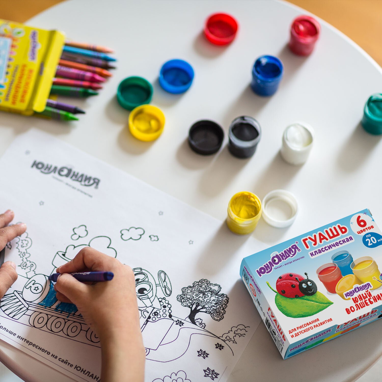 Гуашь ЮНЛАНДИЯ "ЮНЫЙ ВОЛШЕБНИК", 6 цветов по 35 мл, БОЛЬШИЕ БАНОЧКИ, высшее качество, 191335