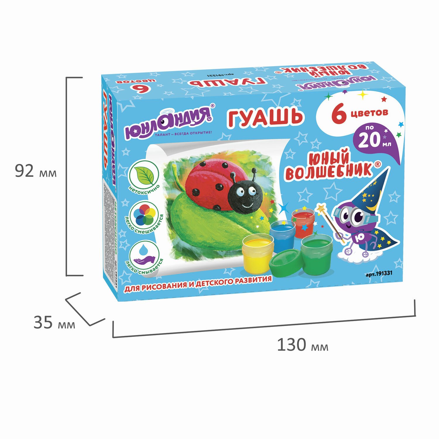 Гуашь ЮНЛАНДИЯ "ЮНЫЙ ВОЛШЕБНИК", 6 цветов по 20 мл, высшее качество, 191331