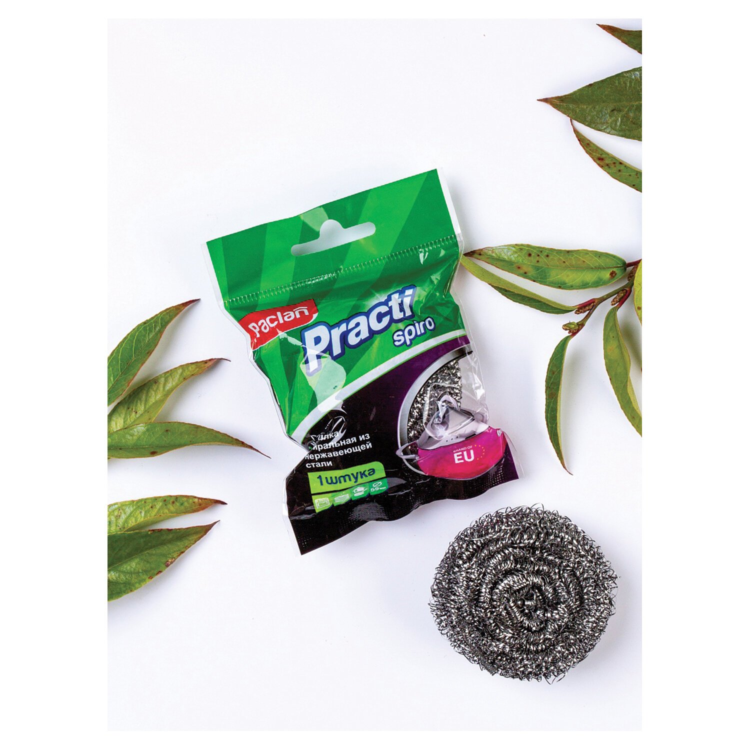 Губка (мочалка) металлическая, сетчатая, 15 г, для посуды, гриля, плиты, PACLAN "Practi Spiro", 408220