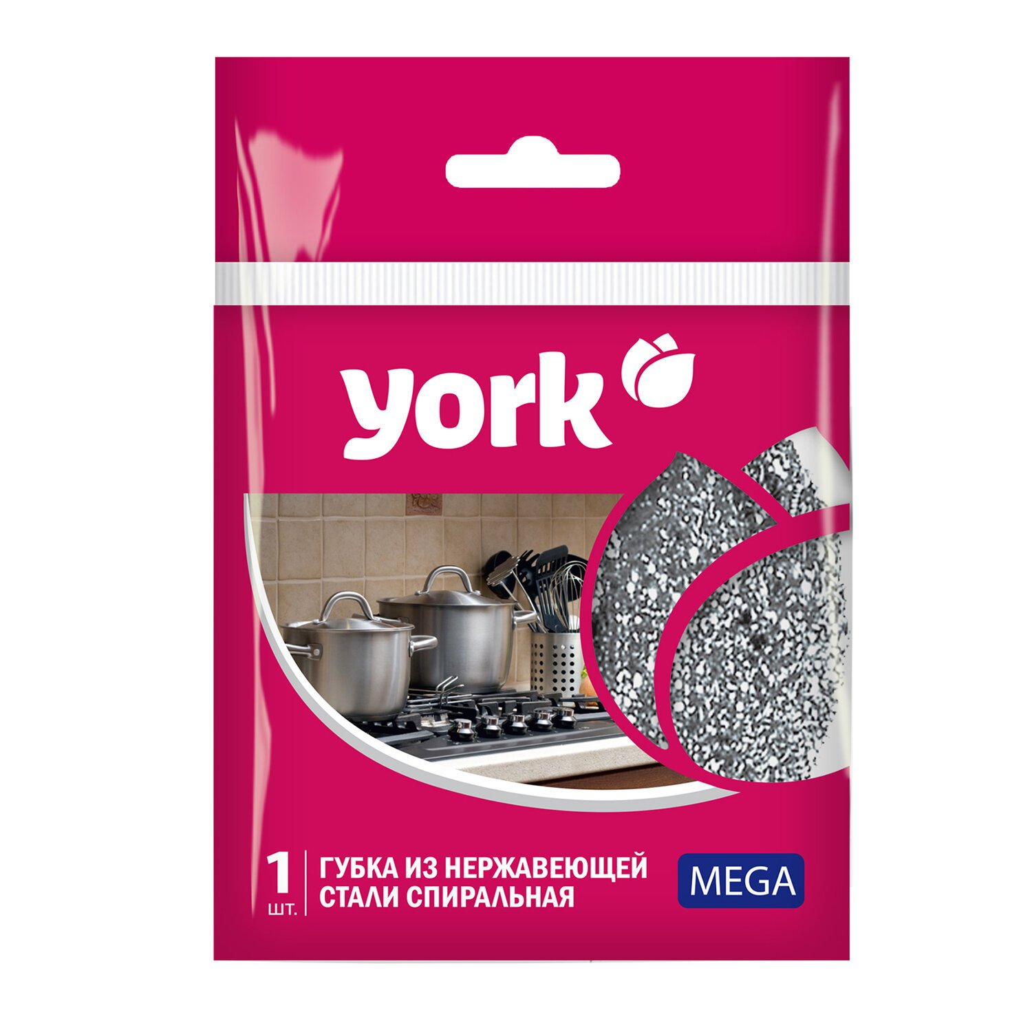 Губка (мочалка) металлическая, спиральная МЕГА для посуды, гриля, плиты YORK подходит для деликатного удаления сильных загрязнений с посуды. Не подходит для тефлона. Подходит для изделий из стали, чугуна, меди и алюминия, противней из стекла.