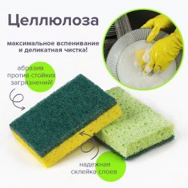 Губки для посуды 110 х 70 х 20 мм ЦЕЛЛЮЛОЗНЫЕ, КОМПЛЕКТ 2 штуки, зеленые, LAIMA, 700257