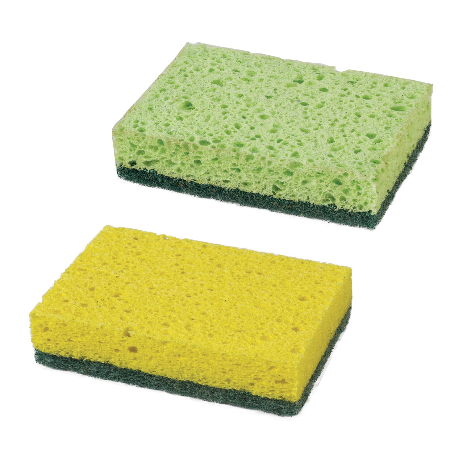 Губки для посуды 110 х 70 х 20 мм ЦЕЛЛЮЛОЗНЫЕ + АБРАЗИВ КОМПЛЕКТ 2 штуки, зеленые/зеленый абразив, LAIMA, 700258