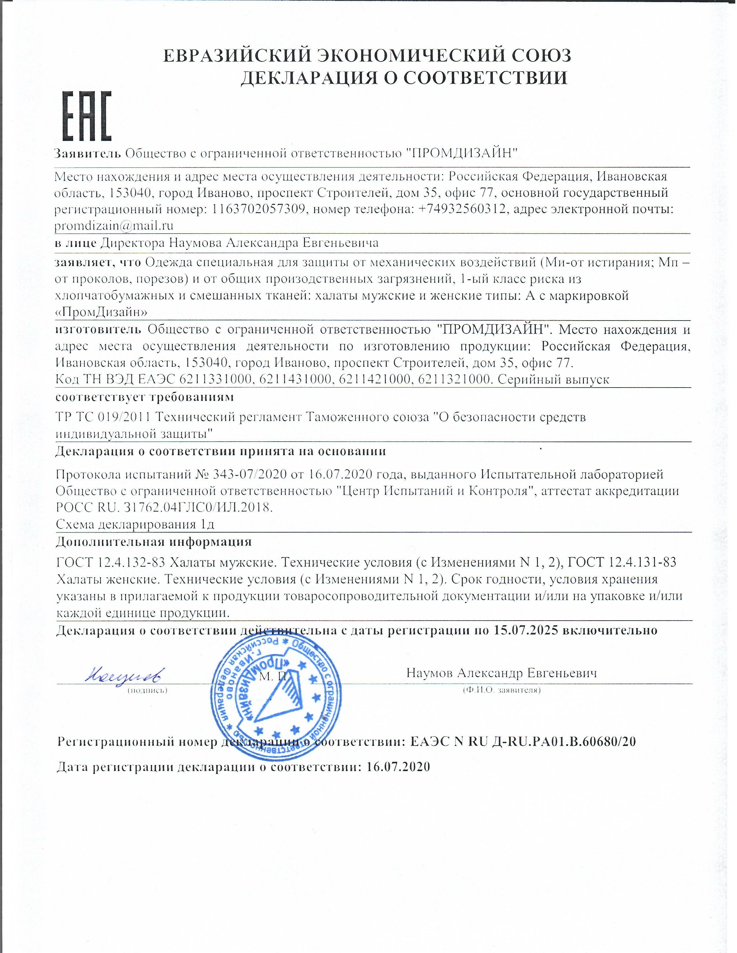 | Соответствует требованиям ГОСТа | ГОСТ 12.4131-83 |