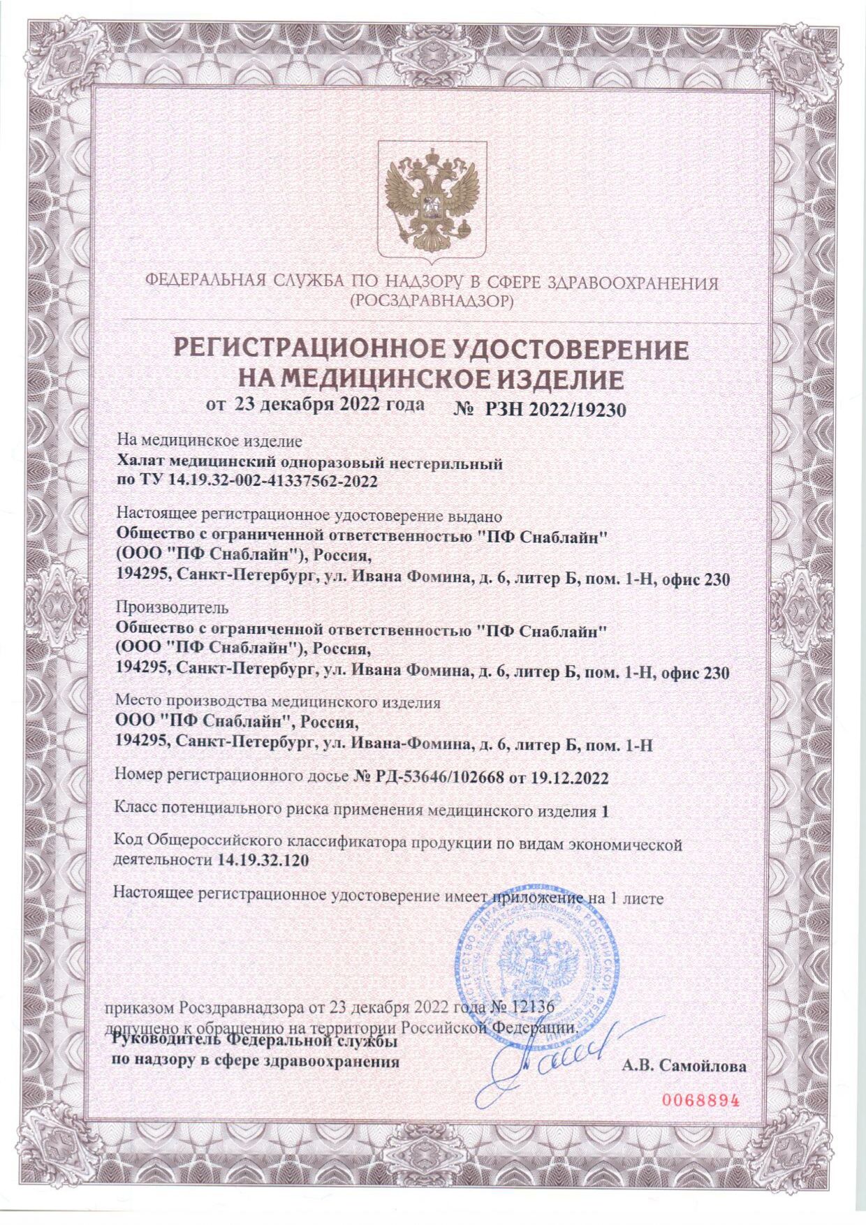Халат СНАБЛАЙН из нетканого материала с кнопочной застежкой и рукавами на резинке – защитная одежда для работников, подвергающихся риску химического или биологического воздействия, брызгам и испарениям.