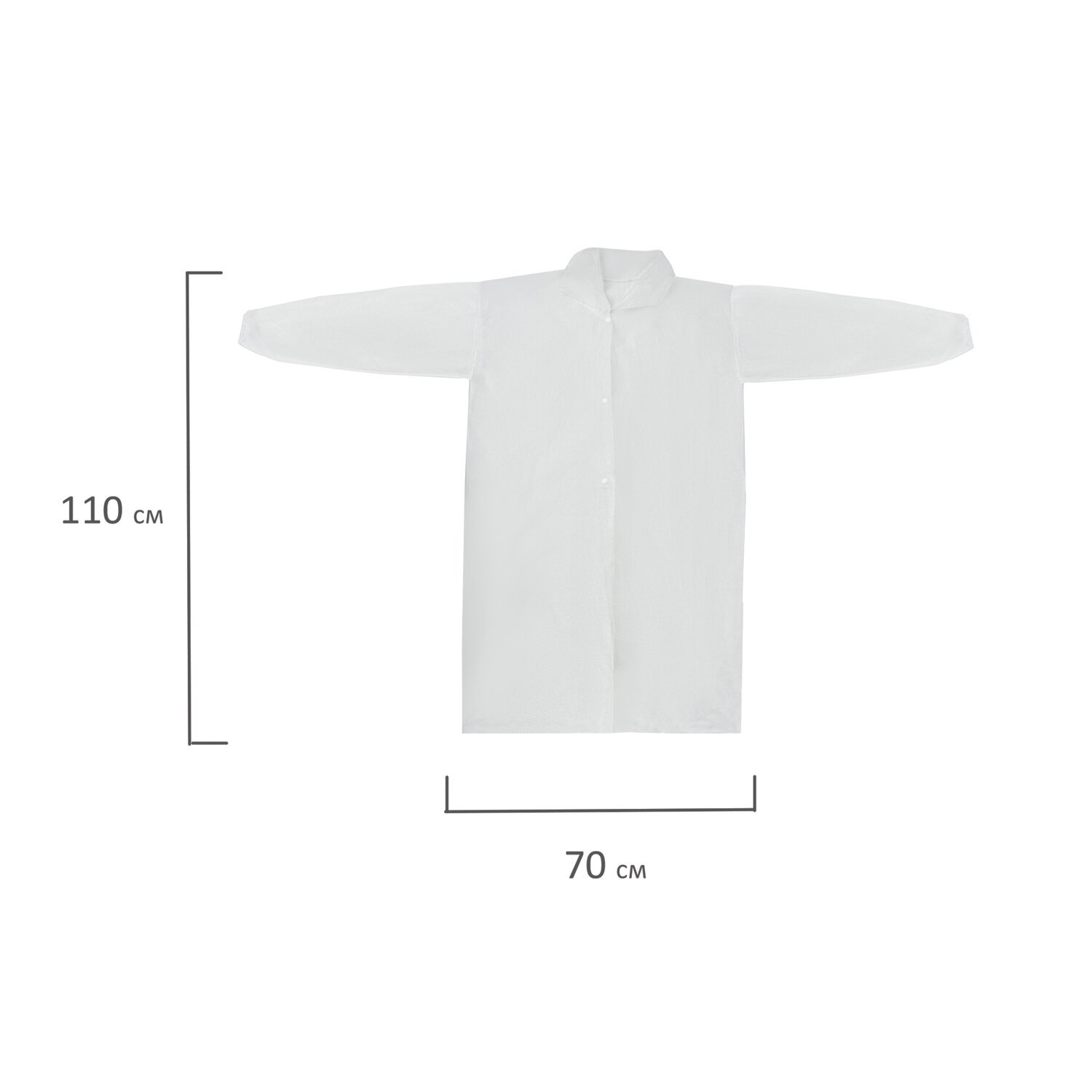 Халат одноразовый белый на кнопках КОМПЛЕКТ 10 шт., XL, 52-54 размер, 110 см, рукав на резинке, 20 г/м2, СНАБЛАЙН