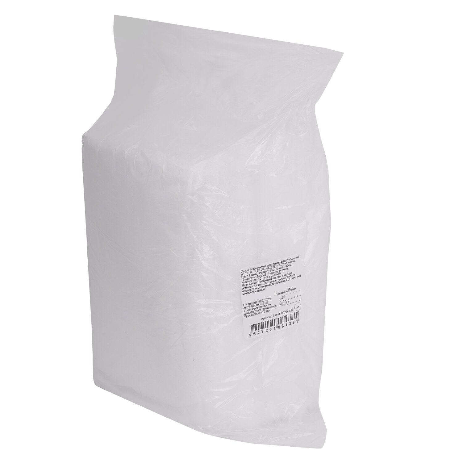 Халат одноразовый белый на кнопках КОМПЛЕКТ 10 шт., XXL, 56-58 размер, 110 см, рукав на резинке, 30 г/м2, ОПТИТРЕЙД