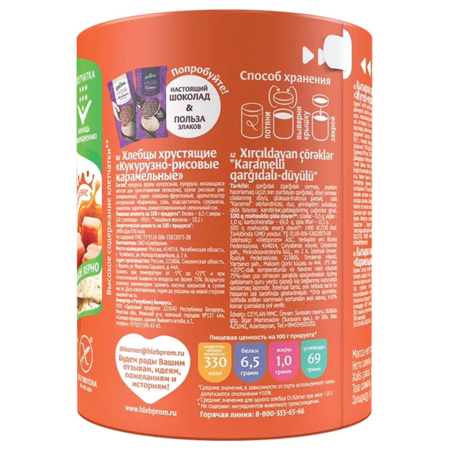 Кукурузно-рисовые хлебцы Dr. Korner со вкусом карамели – продукт для тех, кто любит вкусные и полезные сладости. Подойдут в качестве перекуса или приятного дополнения к завтраку.