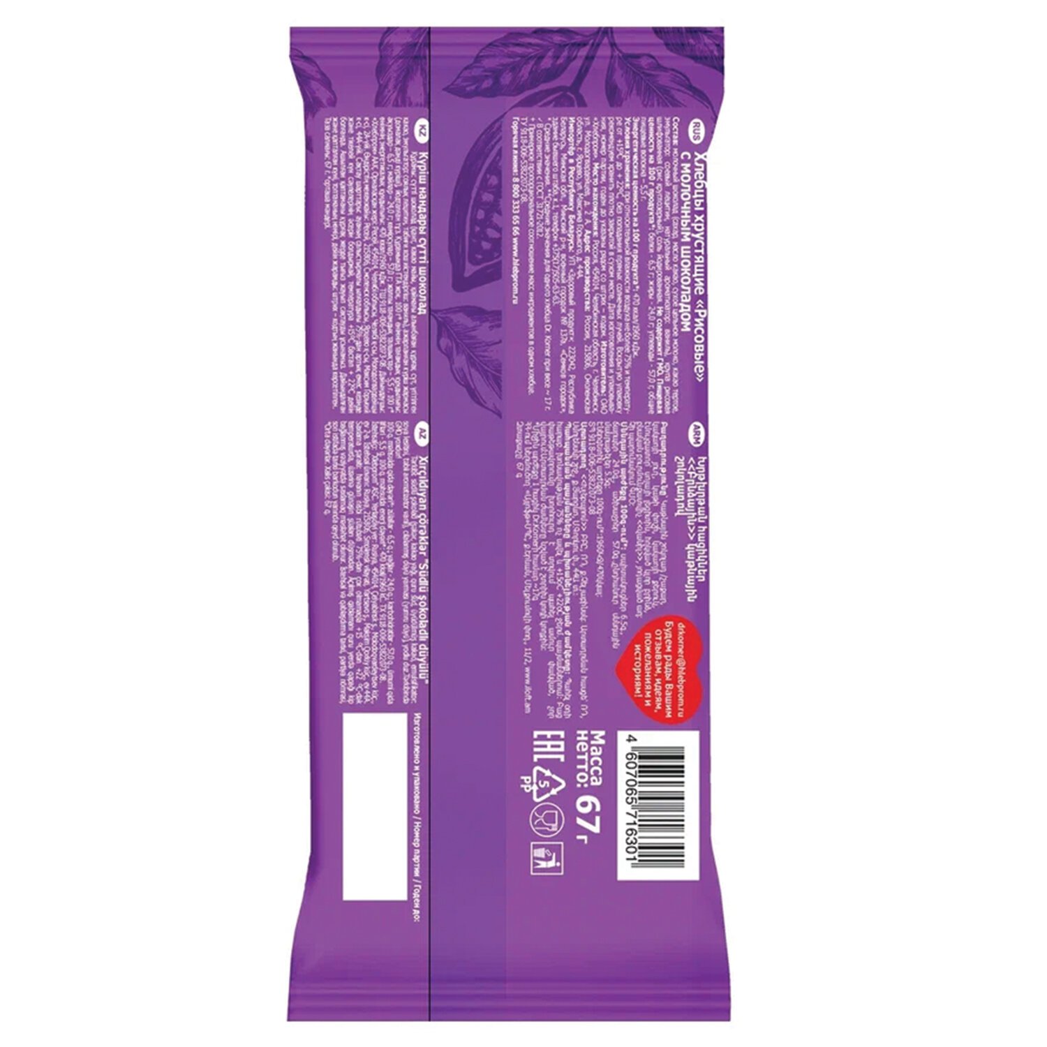 Хлебцы DR.KORNER "Рисовые" в молочном шоколаде, хрустящие, 67 г, пакет, 601090212