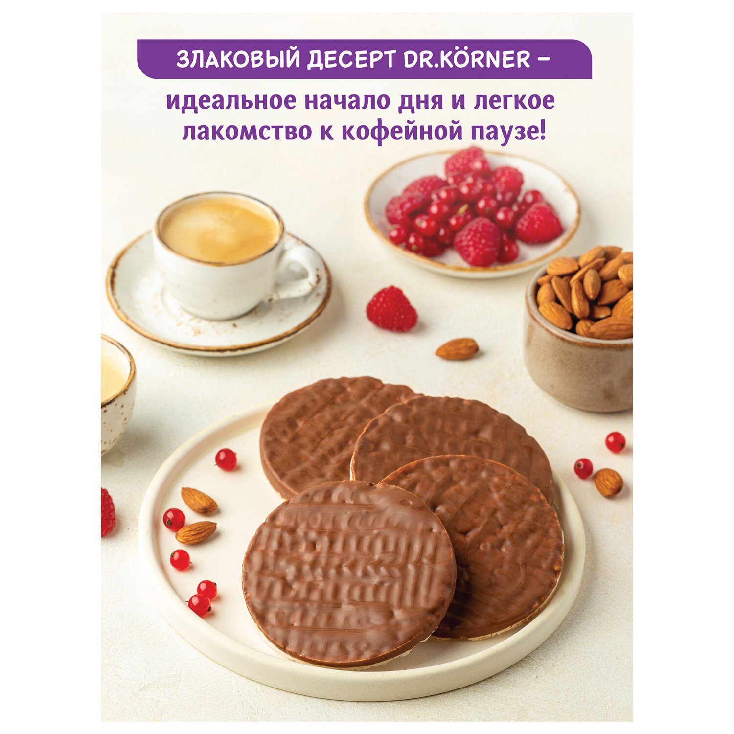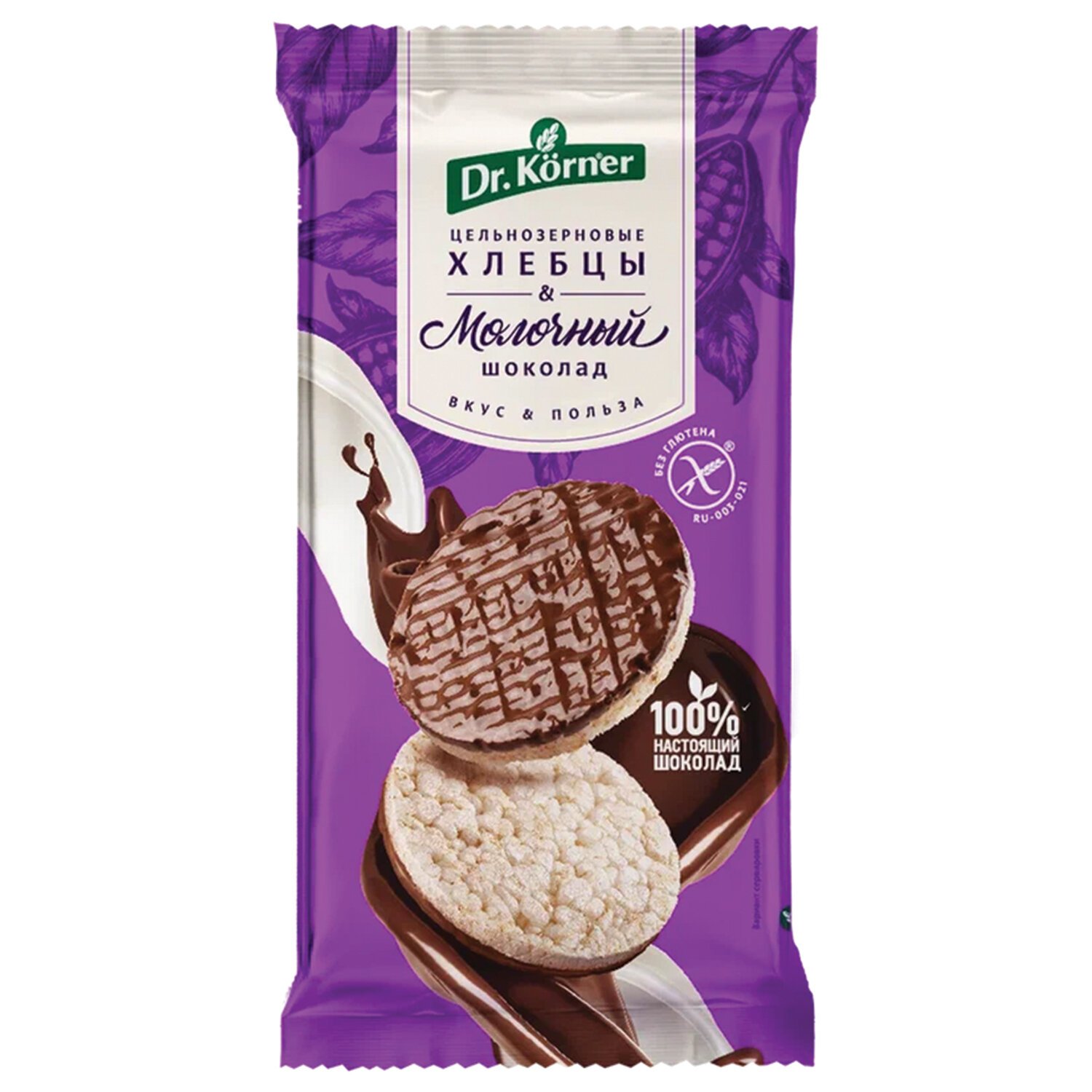 Глазированные настоящим молочным шоколадом хлебцы от Dr. Korner – выбор тех, кто любит не только вкусные, но и полезные сладости. В составе продукта настоящий молочный шоколад, рисовая крупа и большое содержание клетчатки. Нет глютена и вредных добавок.