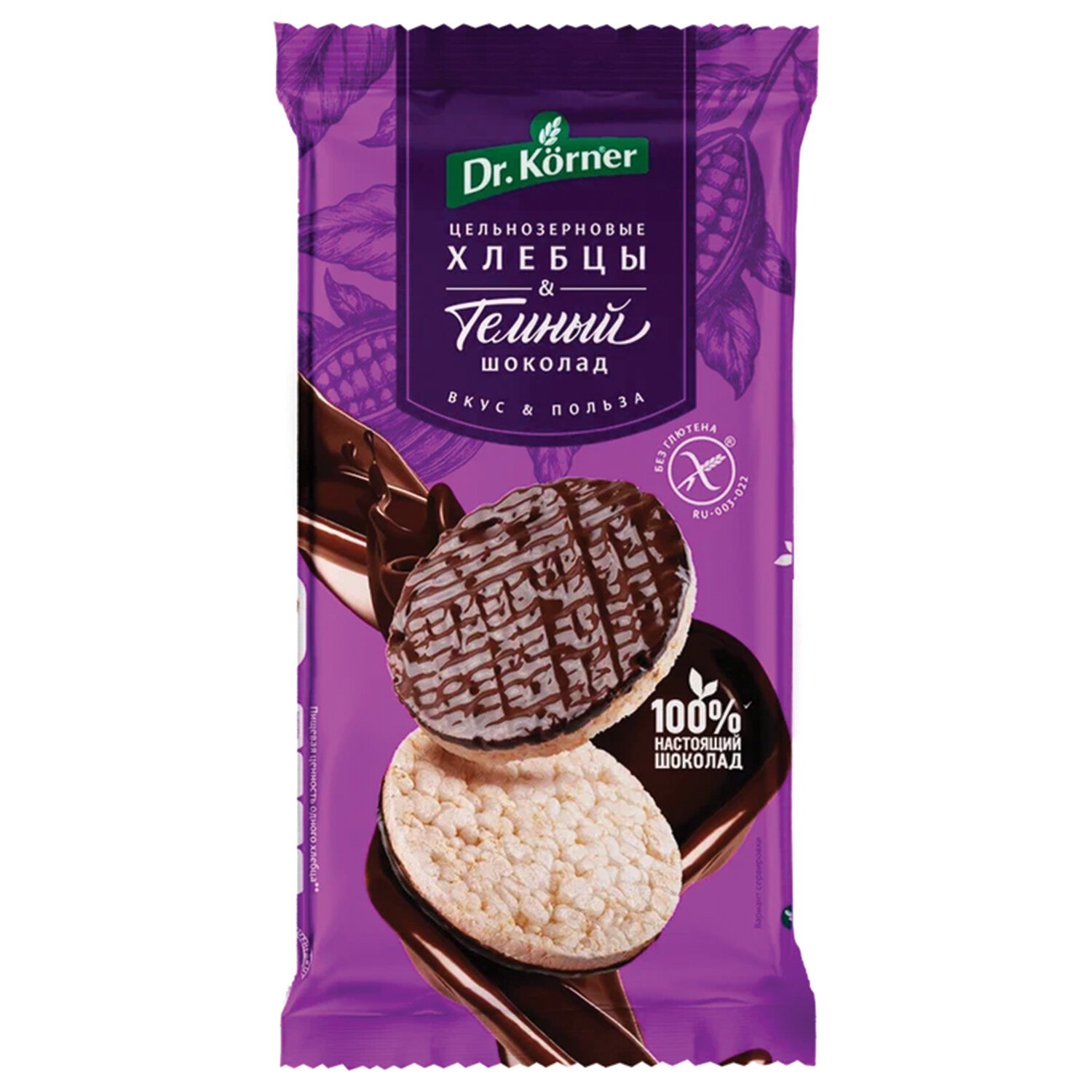 Глазированные настоящим темным шоколадом хлебцы от Dr. Korner – выбор тех, кто любит не только вкусные, но и полезные сладости. В составе продукта настоящий тёмный шоколад, рисовая крупа и большое содержание клетчатки. Нет глютена и вредных добавок.
