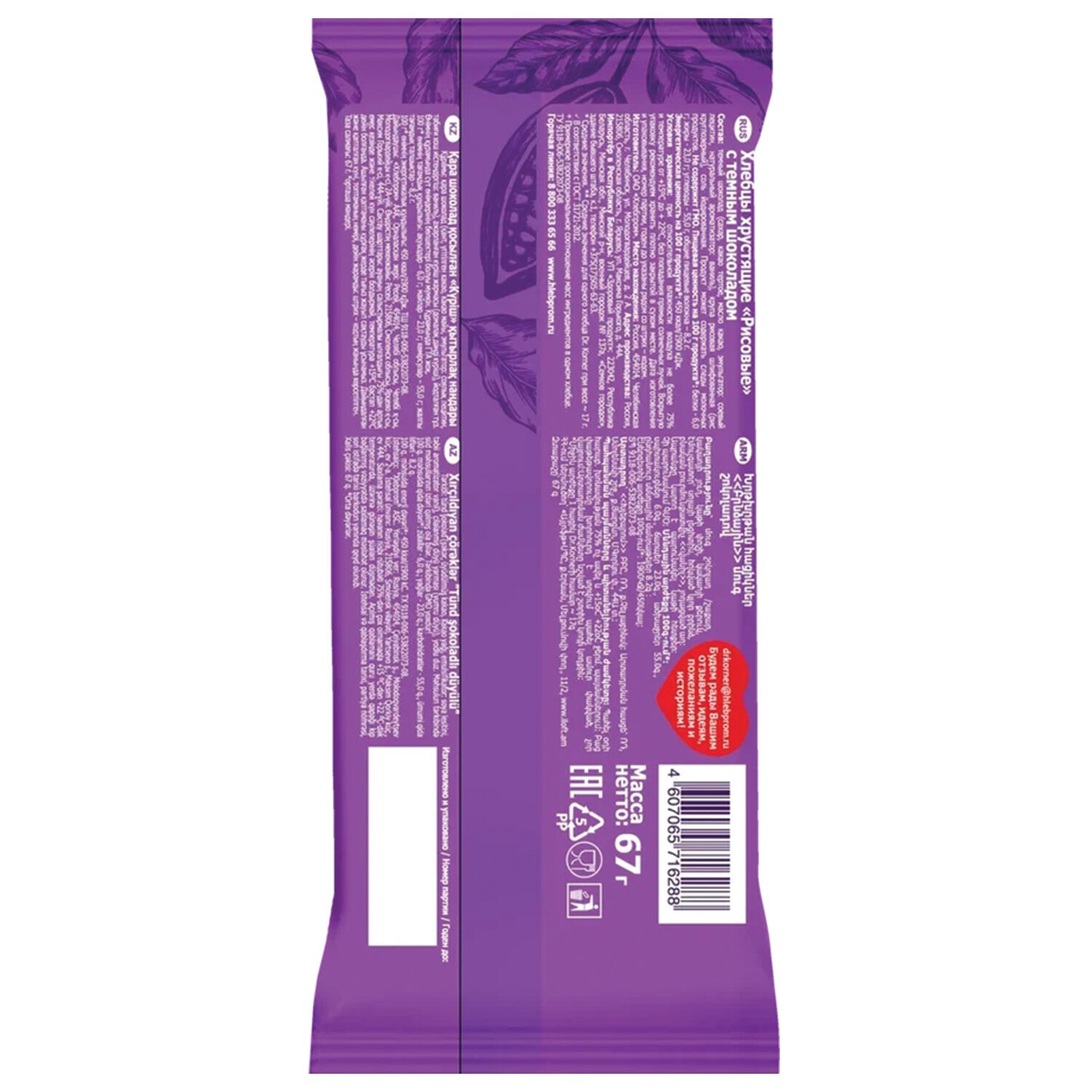 Хлебцы DR.KORNER "Рисовые" в темном шоколаде, хрустящие, 67 г, пакет, 601090213