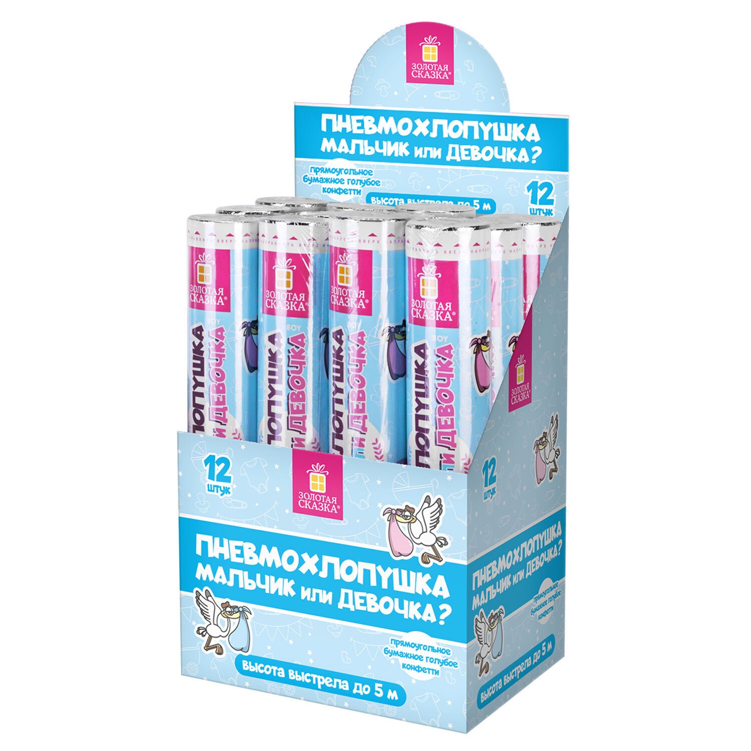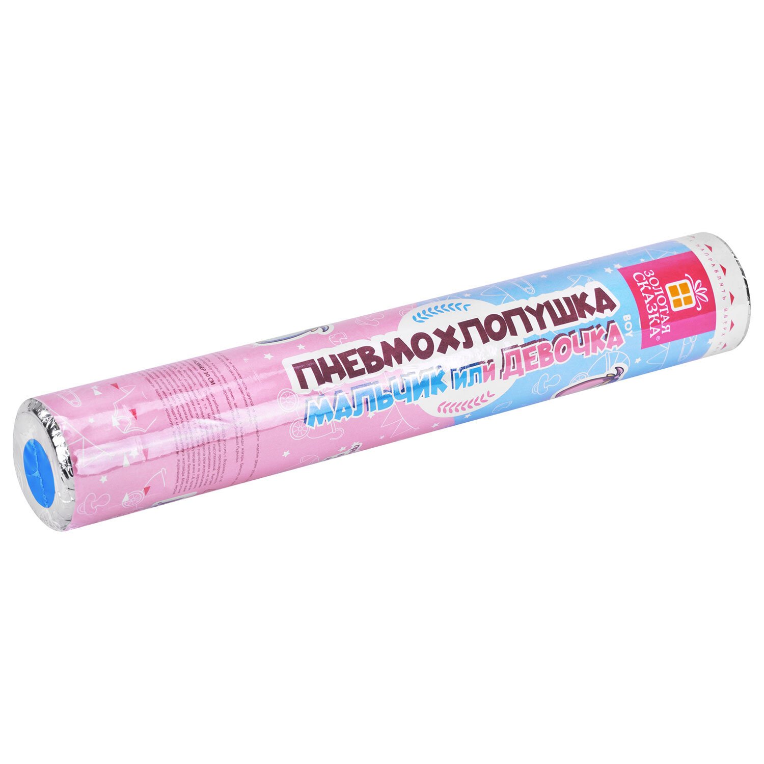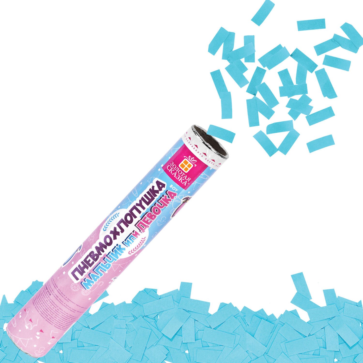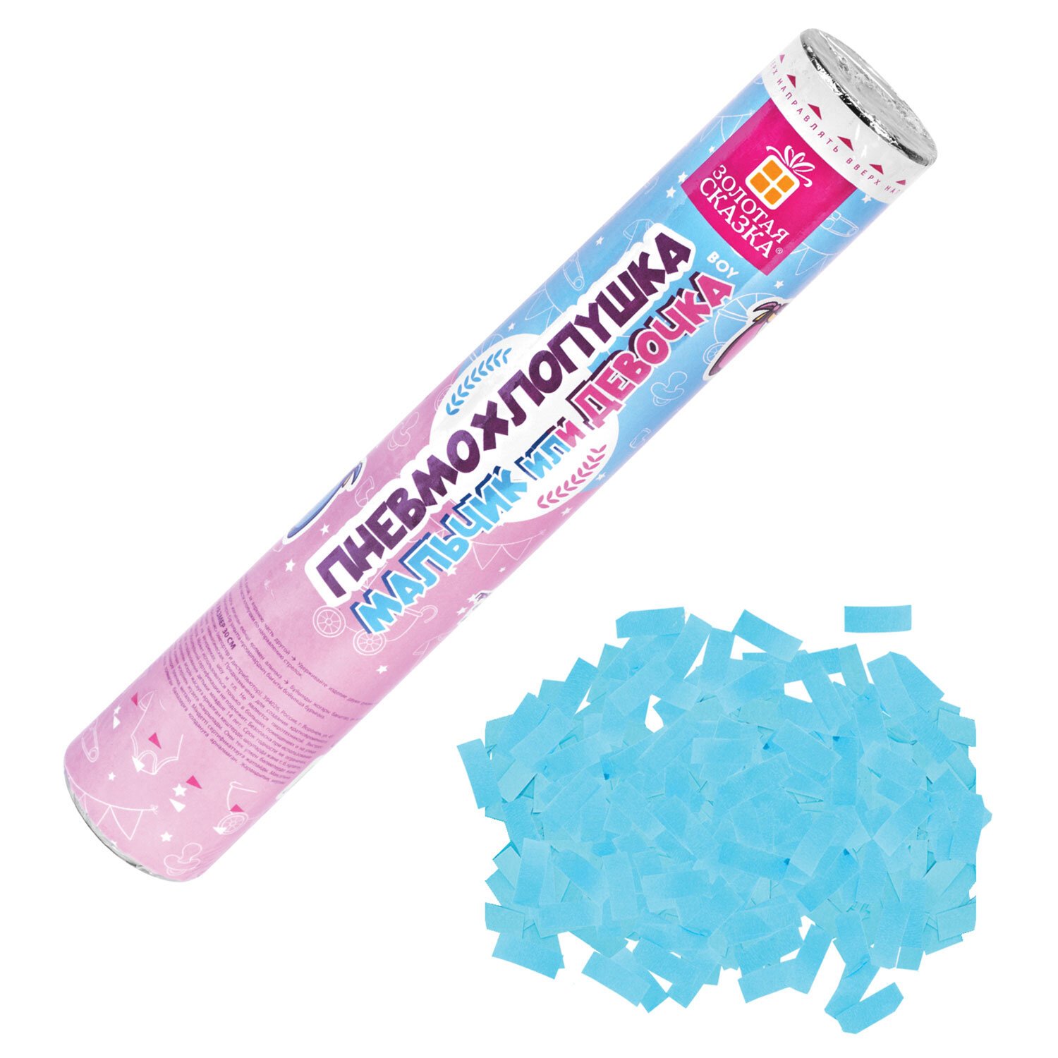 Хлопушка пневматическая 30 см, "Мальчик или девочка", бумага, голубой цвет, ЗОЛОТАЯ СКАЗКА, 592457