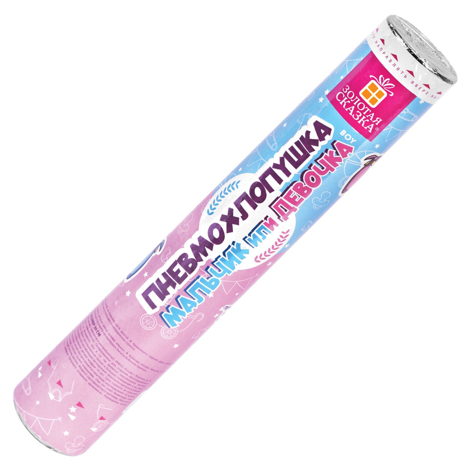 Хлопушка пневматическая 30 см "Мальчик или девочка", бумага, розовый цвет, ЗОЛОТАЯ СКАЗКА, 592456