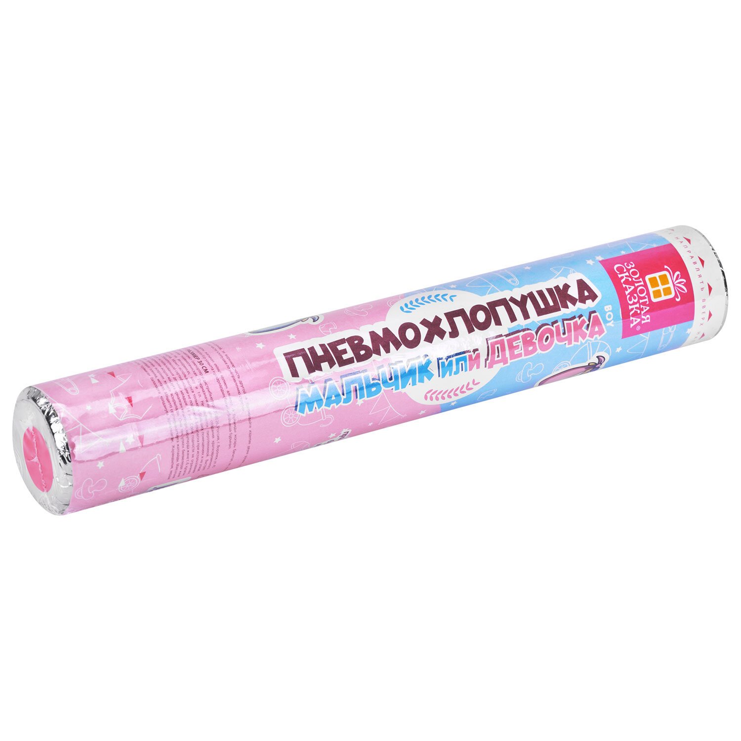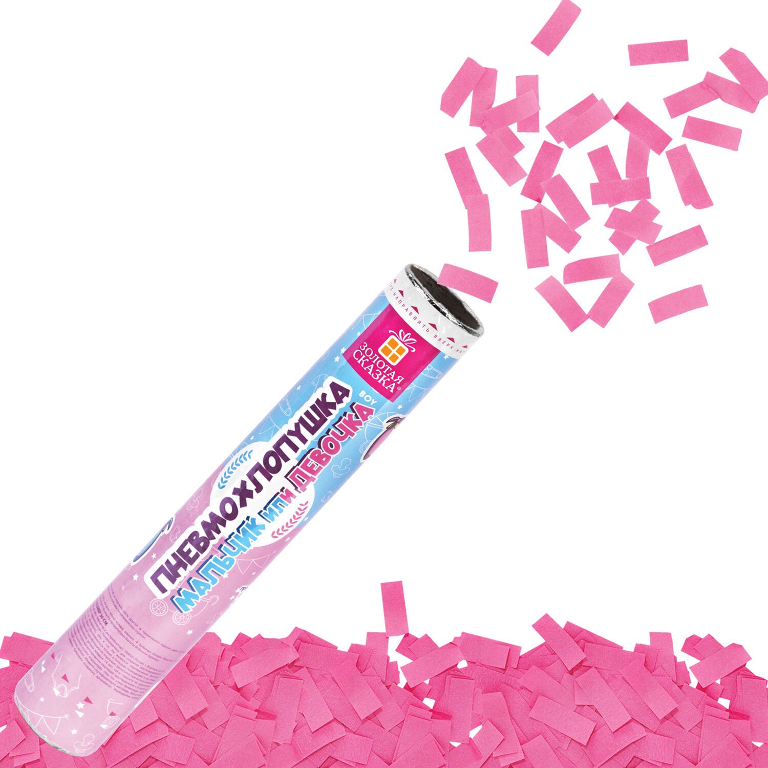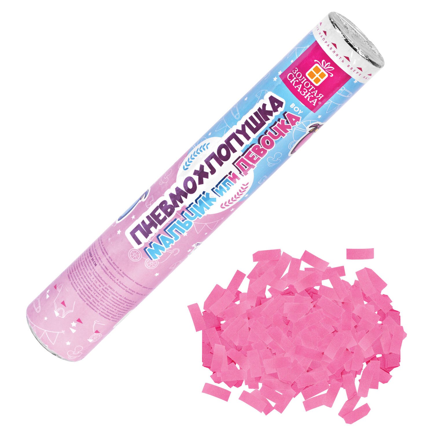 Хлопушка пневматическая 30 см "Мальчик или девочка", бумага, розовый цвет, ЗОЛОТАЯ СКАЗКА, 592456