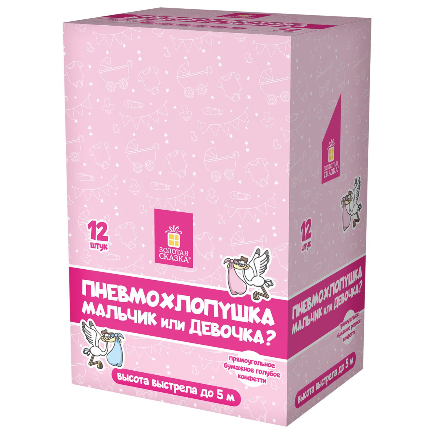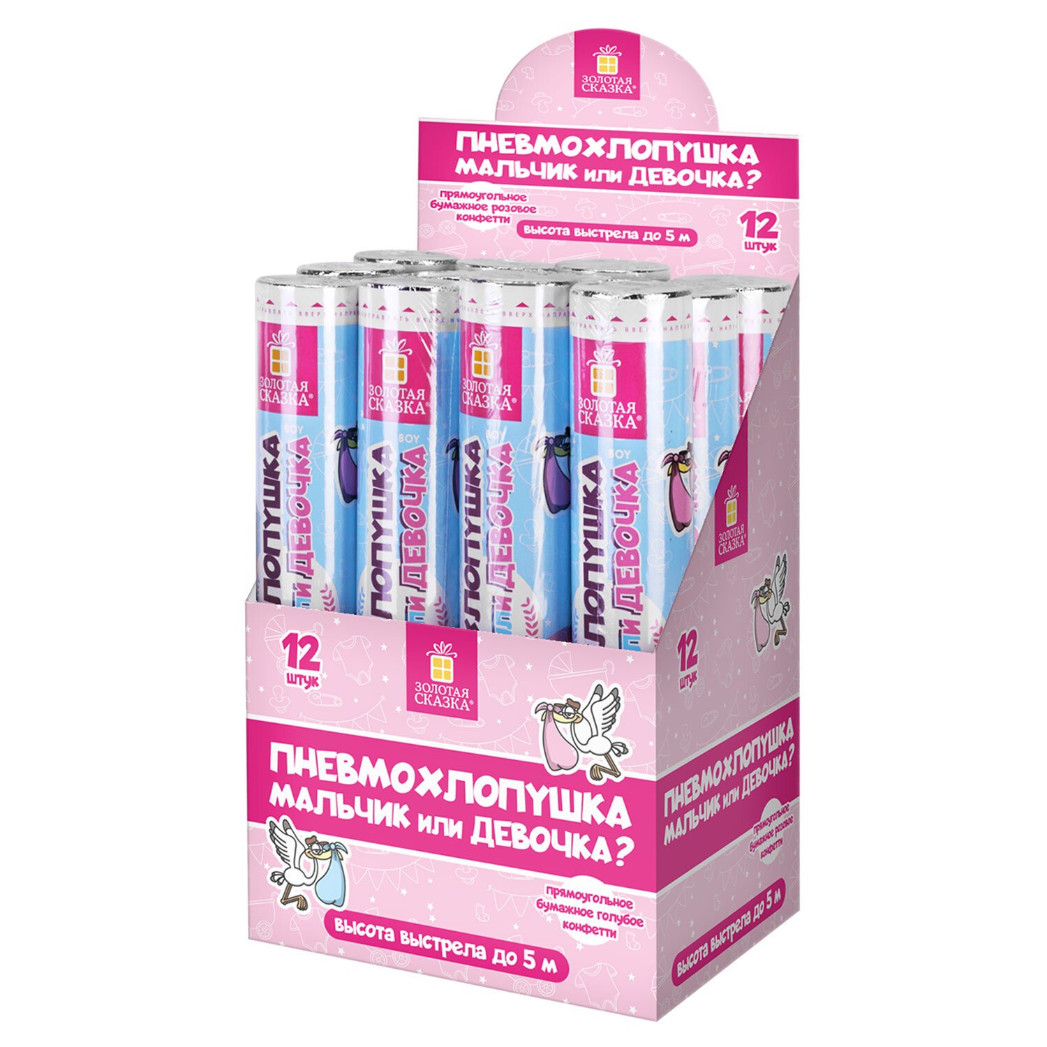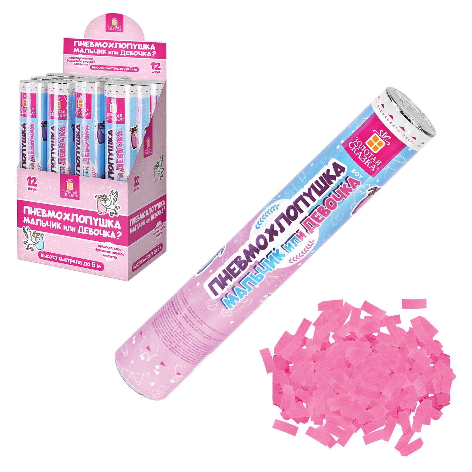 Хлопушка пневматическая 30 см "Мальчик или девочка", бумага, розовый цвет, ЗОЛОТАЯ СКАЗКА, 592456