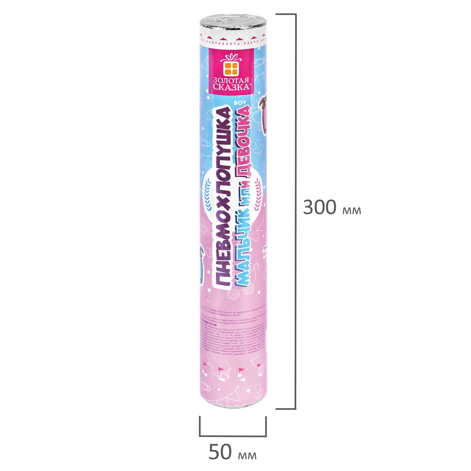 Хлопушка пневматическая 30 см, "Мальчик или девочка", бумага, голубой цвет, ЗОЛОТАЯ СКАЗКА, 592457