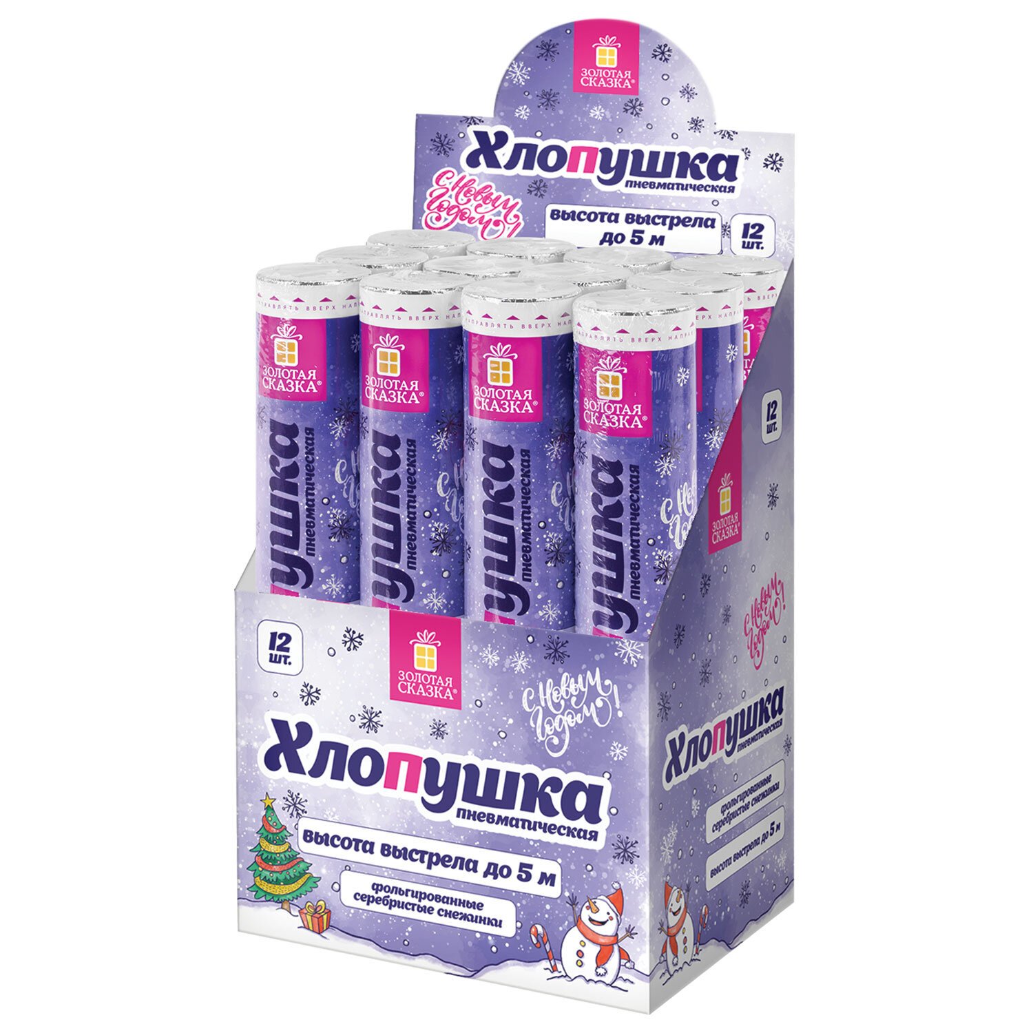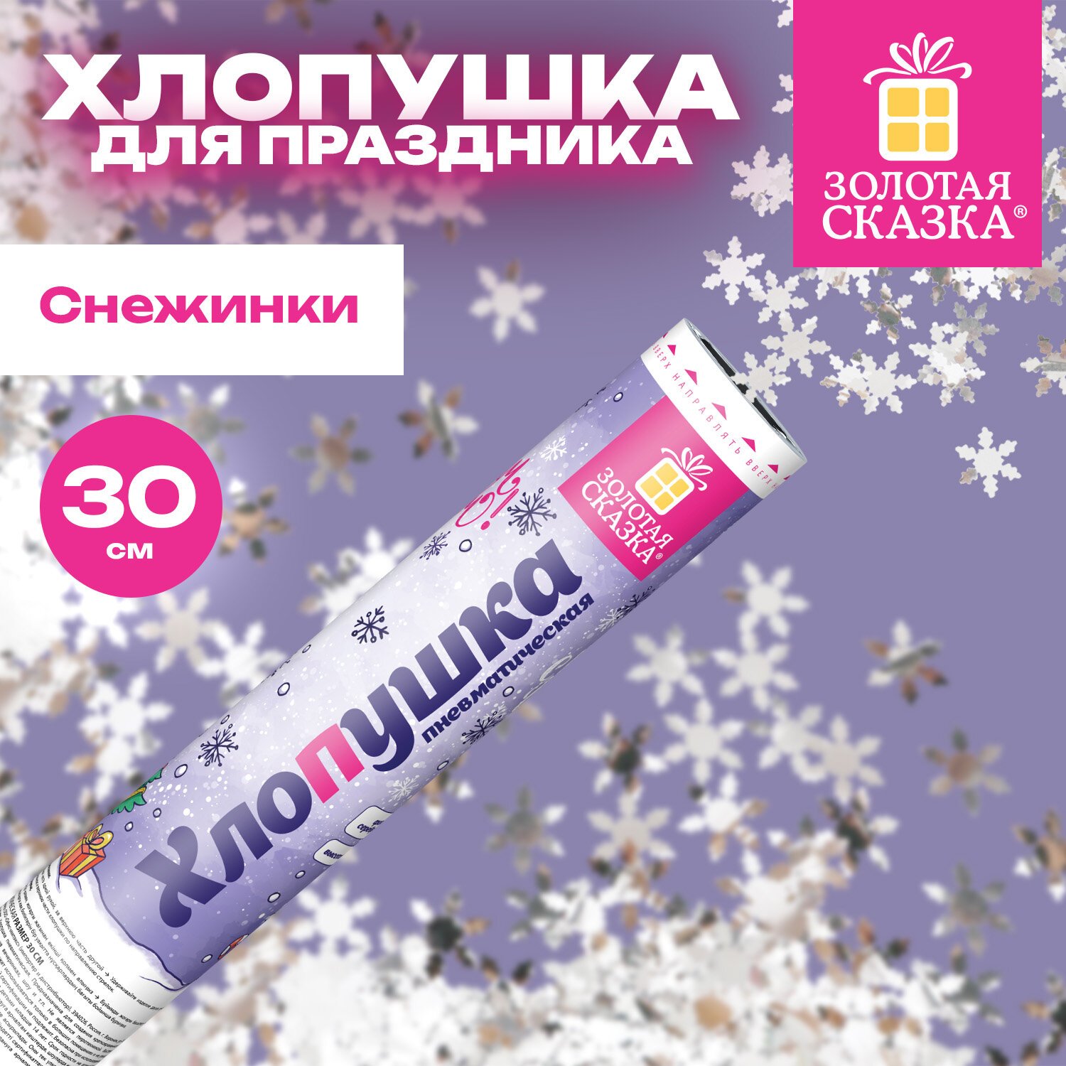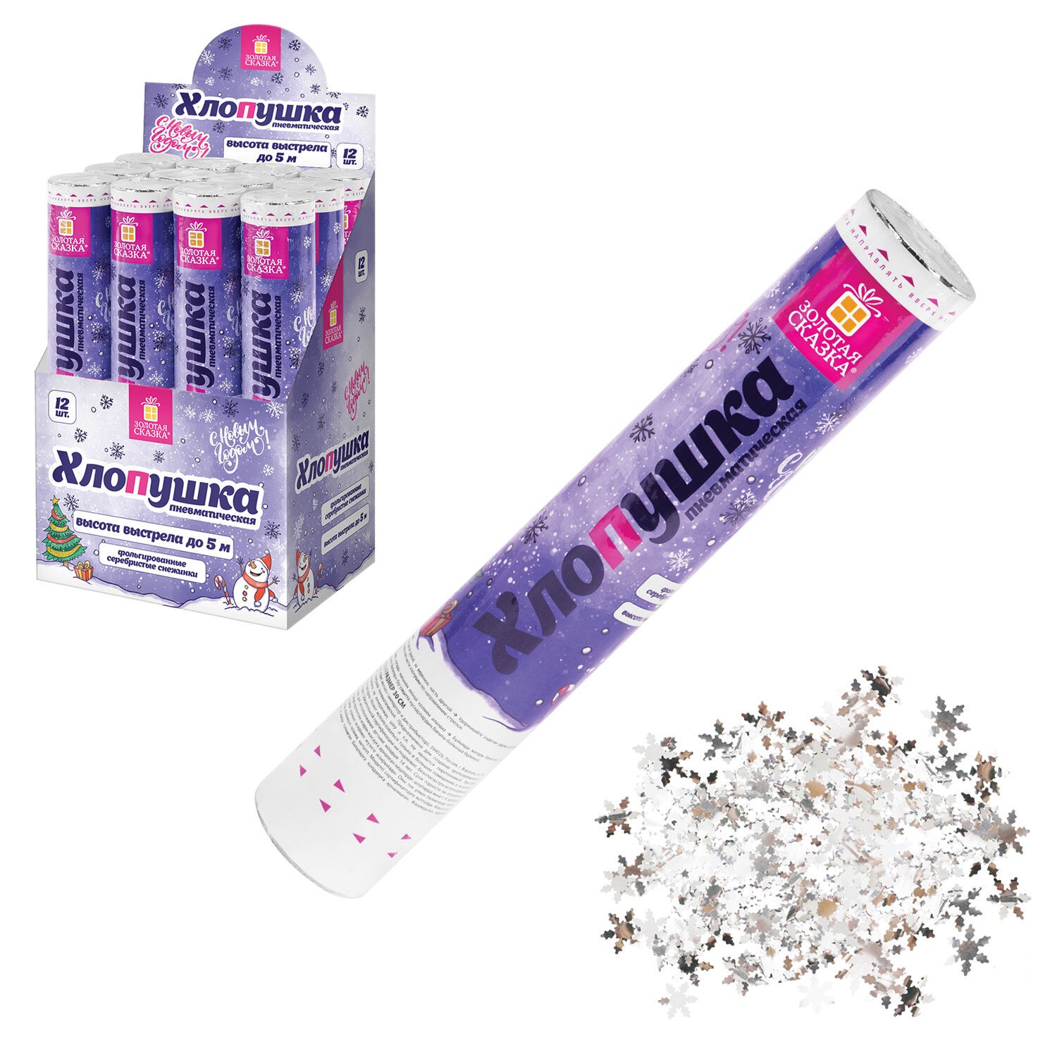 Хлопушка пневматическая 30 см "Снежинки", фольга, серебро, ЗОЛОТАЯ СКАЗКА, 592460