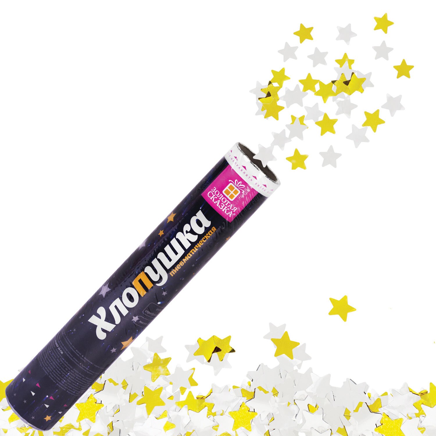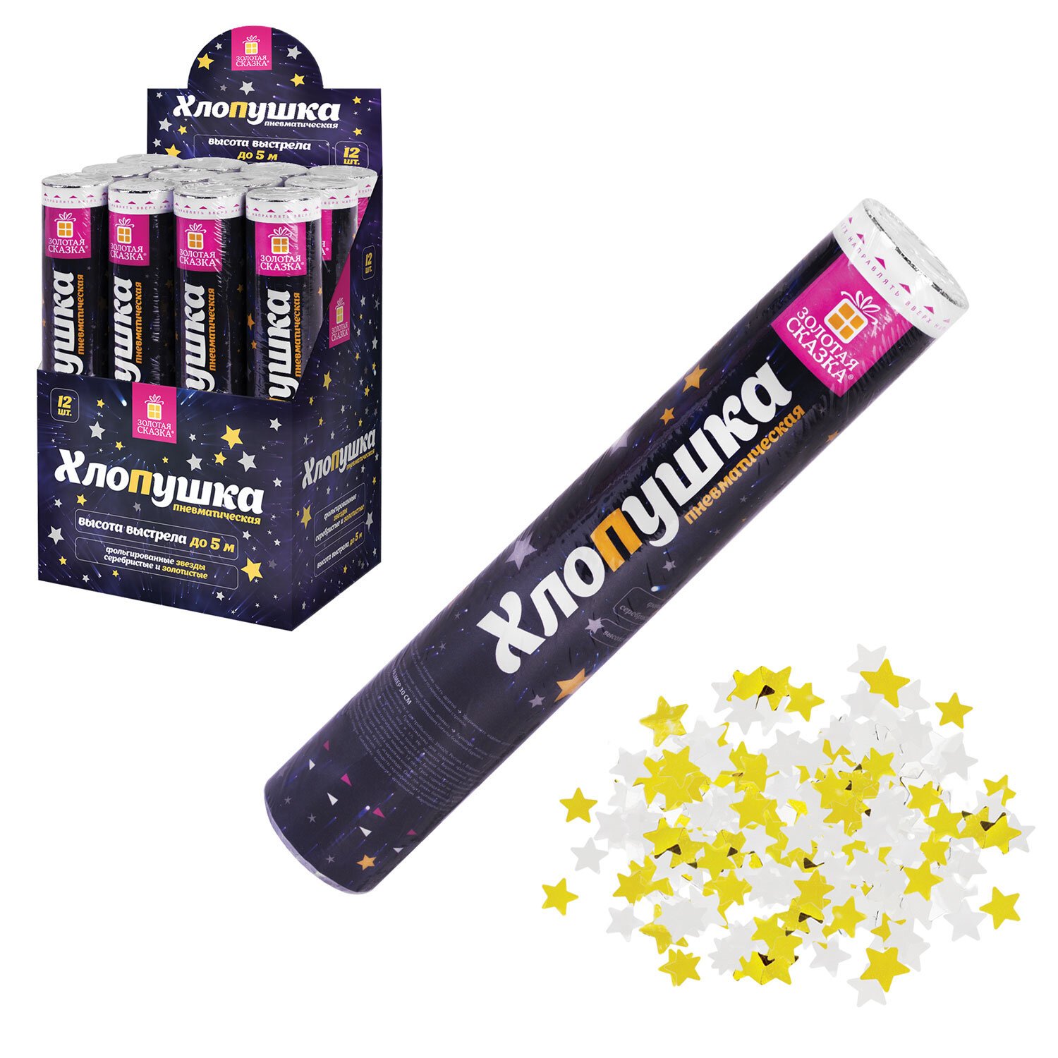 Хлопушка пневматическая 30 см "Звёзды", фольга, золото и серебро, ЗОЛОТАЯ СКАЗКА, 592459