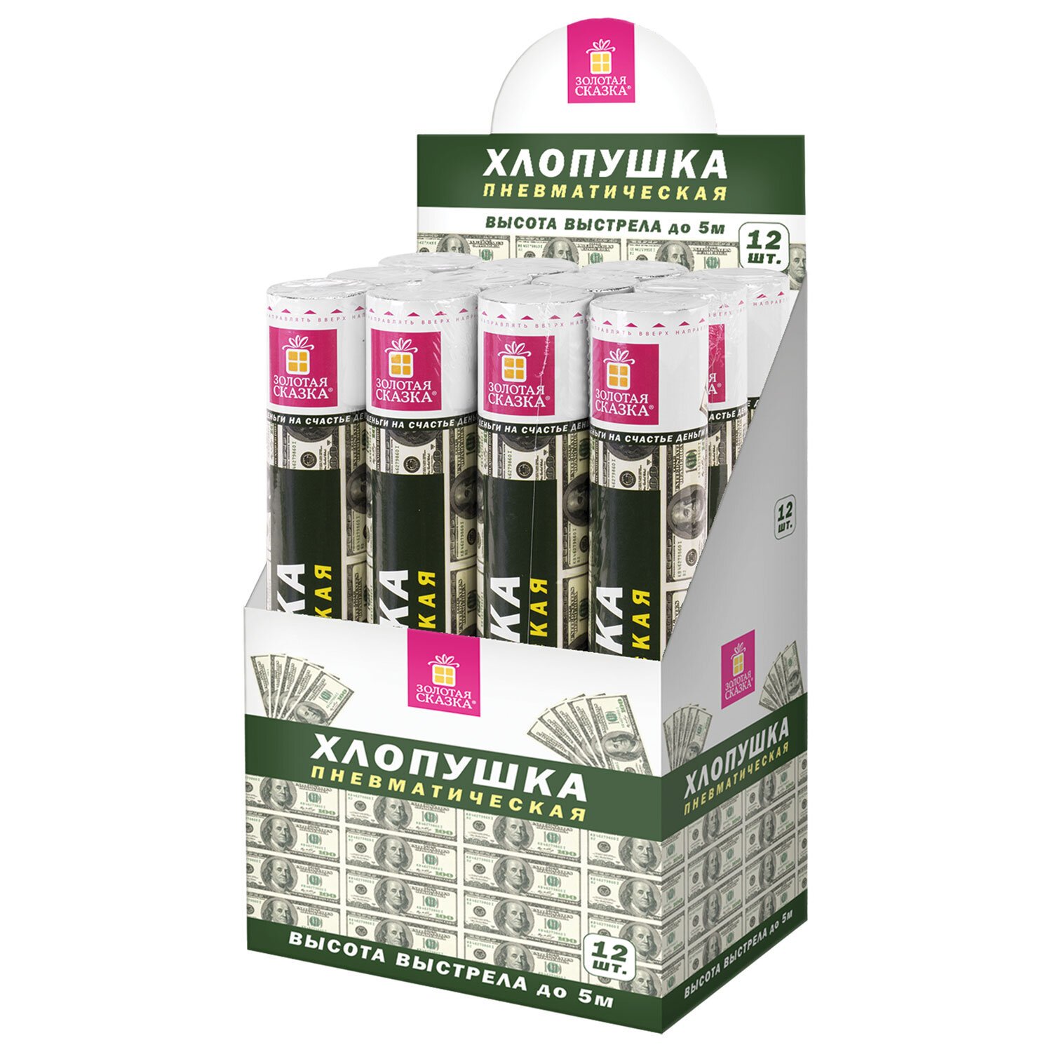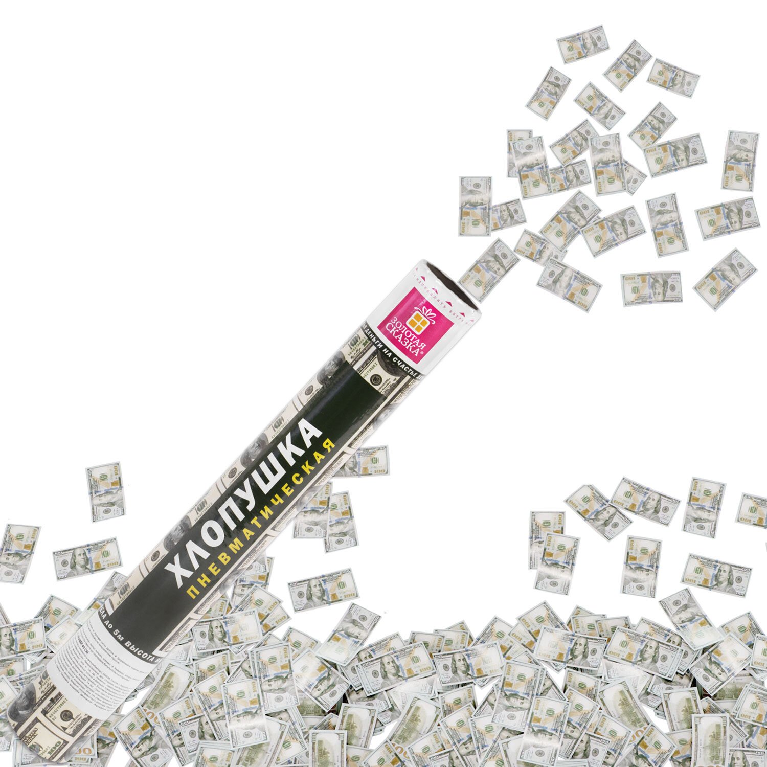 Хлопушка пневматическая 40 см "DOLLARS", бумага, наполнитель "доллары", ЗОЛОТАЯ СКАЗКА, 592463