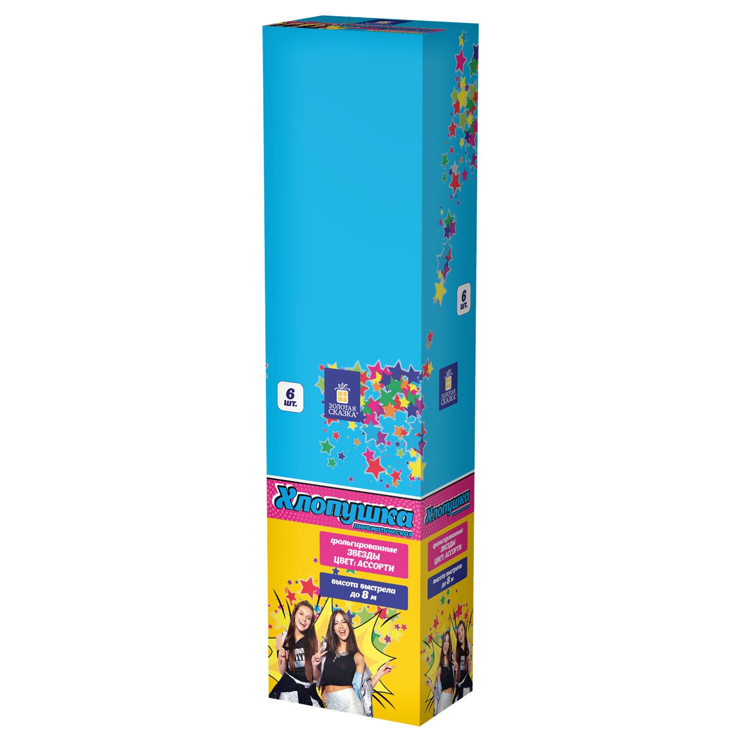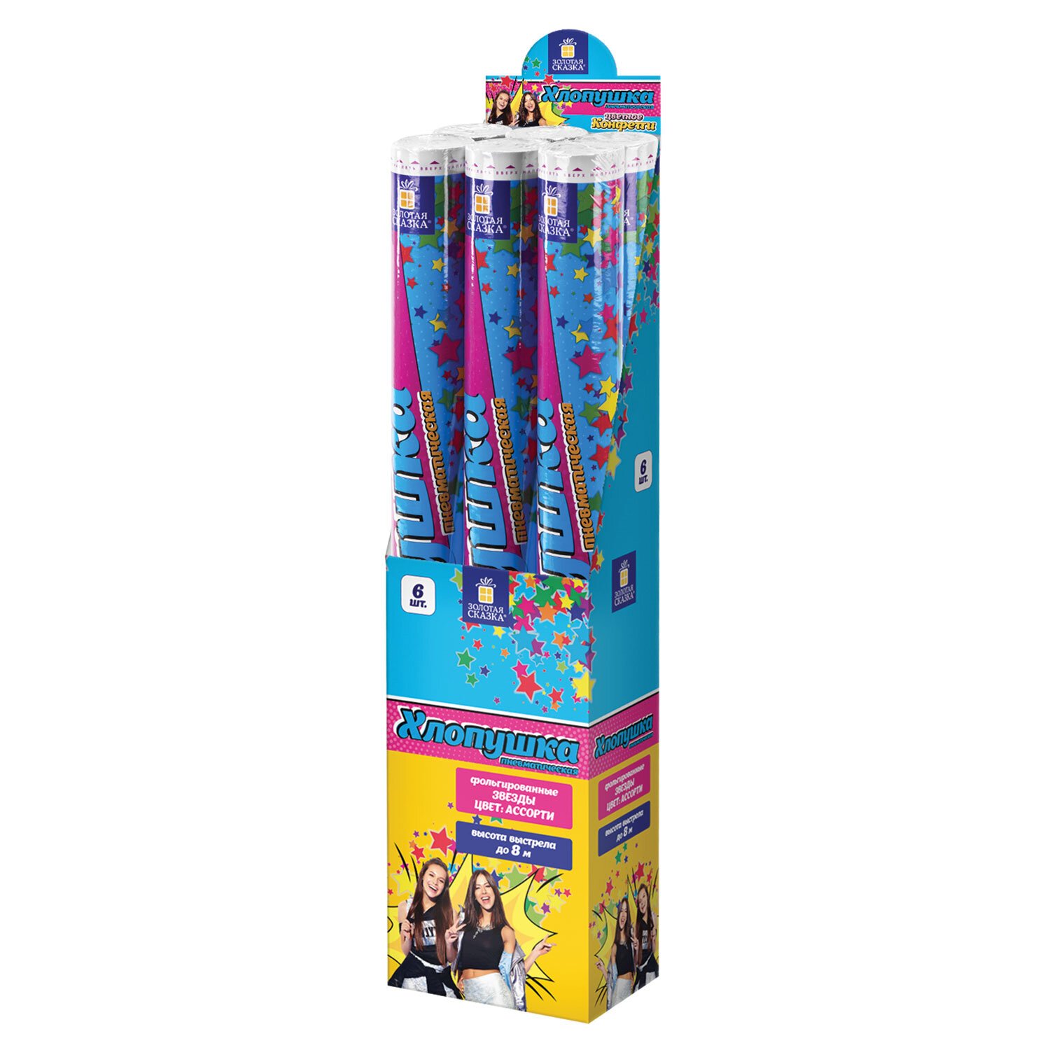 Хлопушка пневматическая ЗОЛОТАЯ СКАЗКА 40 см, фольга, звезды, ассорти, 591480