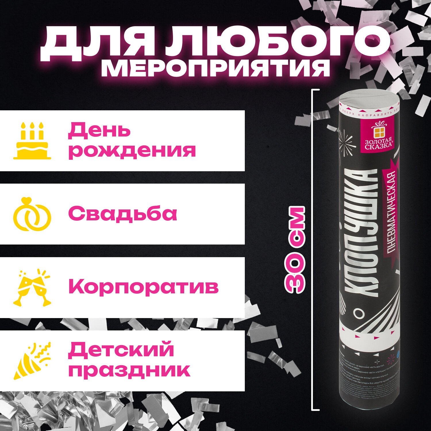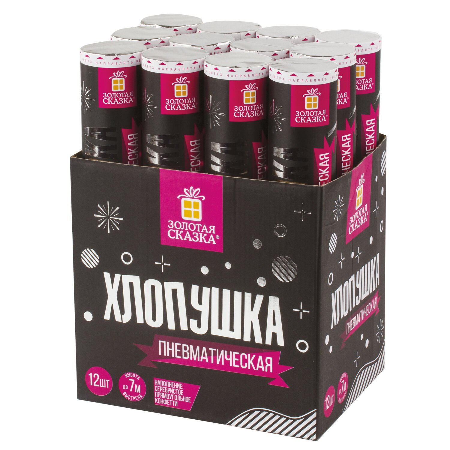 Хлопушка пневматическая ЗОЛОТАЯ СКАЗКА 30 см, фольга, прямоугольники, серебристый, 591477