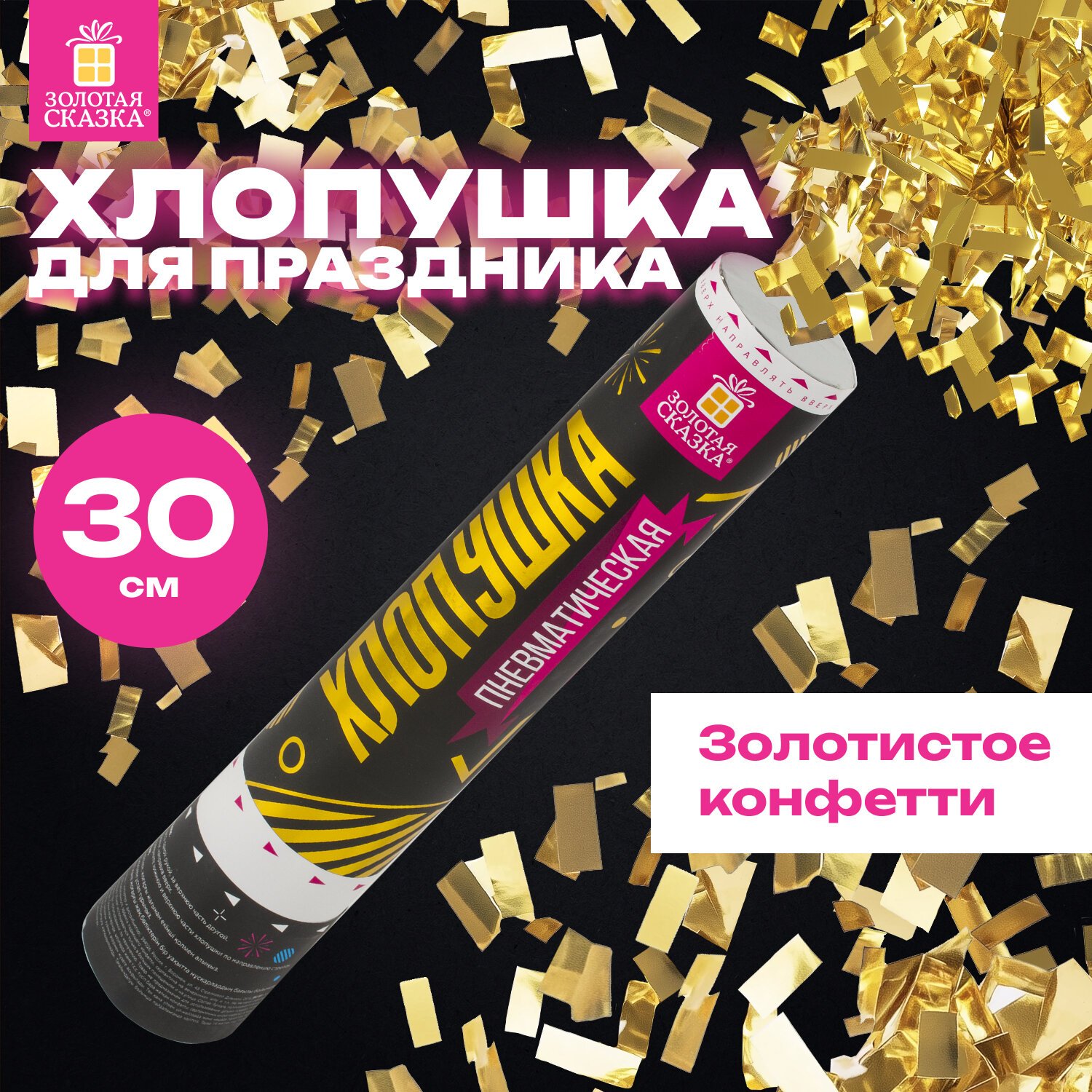 Хлопушка пневматическая 30 см "Серпантин" фольга, конфетти ассорти, ЗОЛОТАЯ СКАЗКА, 592467
