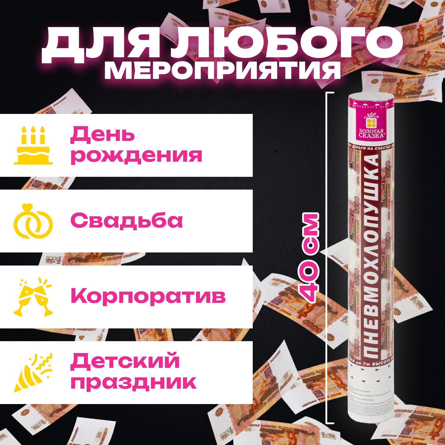 Хлопушка пневматическая ЗОЛОТАЯ СКАЗКА "5000 рублей" 40см, наполнитель "купюры", 591479