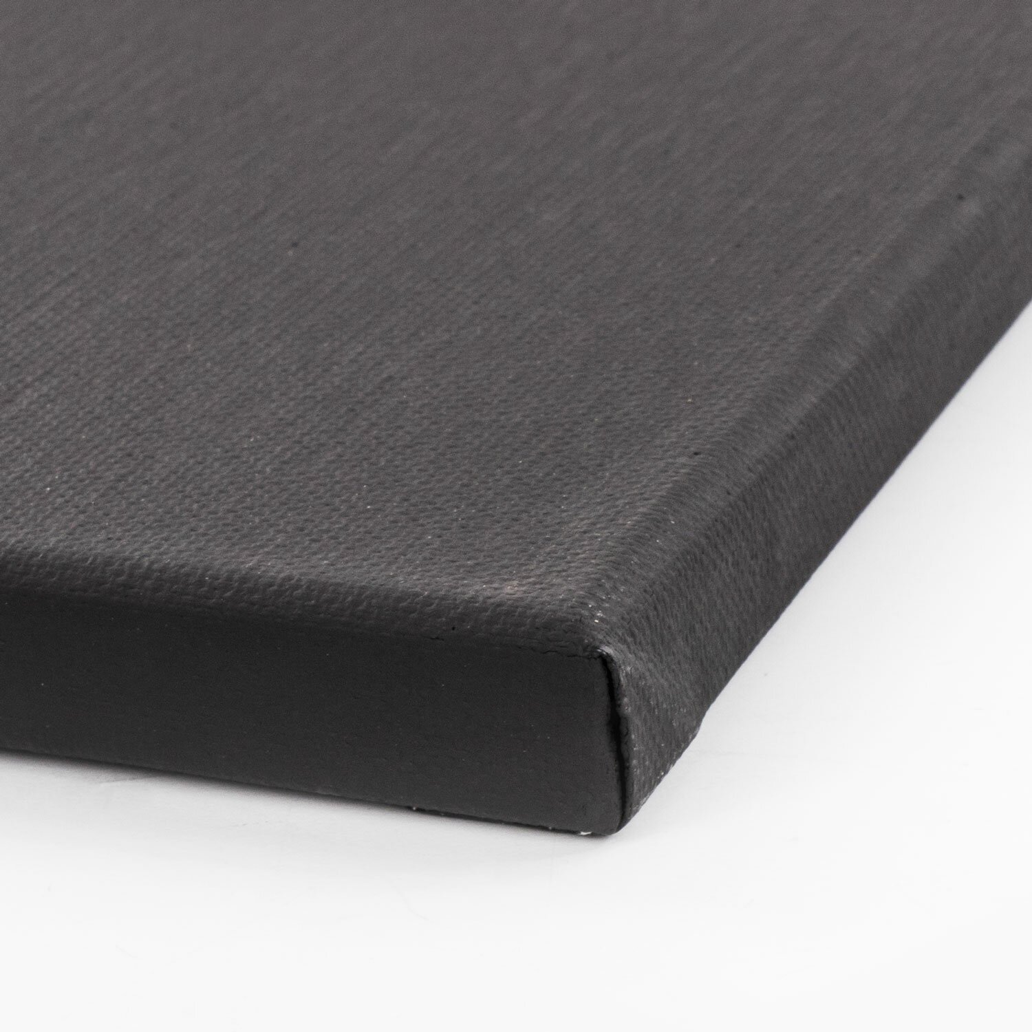 Изготовлен из 100% хлопка плотностью 380 г/м2, покрытого чёрным акриловым грунтом. Хлопковое полотно характеризуется ровной поверхностью со слабовыраженным рельефом. Односторонний трехслойный акриловый грунт позволяет сохранить цвета неизменными, не допуская их прожухания. Холст прямоугольной формы на подрамнике полностью готов к работе.