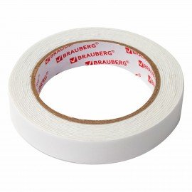 Клейкая двухсторонняя лента 25 мм х 8 м, НА ВСПЕНЕННОЙ ОСНОВЕ, 1 мм, прочная, BRAUBERG, 600487
