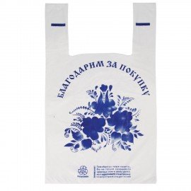 Пакеты "майка", КОМПЛЕКТ 100 шт., 28+14х50 см, ПНД, "Спасибо за покупку "Гжель", 15 мкм