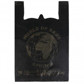 Пакеты "майка", КОМПЛЕКТ 100 шт., 43+20х65 см, ПНД, "World", 30 мкм, ЧЕРНЫЕ, ЮПЛАСТ, ЮМАЙ1071