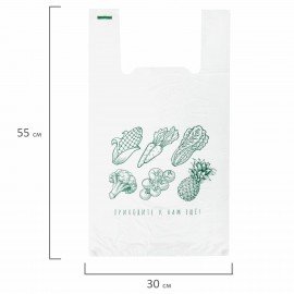 Пакеты "майка", КОМПЛЕКТ 100 шт., 30х16х55 см, ПНД, 15 мкм