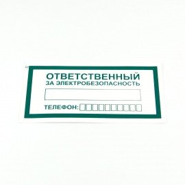 Знак "Ответственный за электробезопасность", КОМПЛЕКТ 10 штук, 100х200 мм, пленка, А31