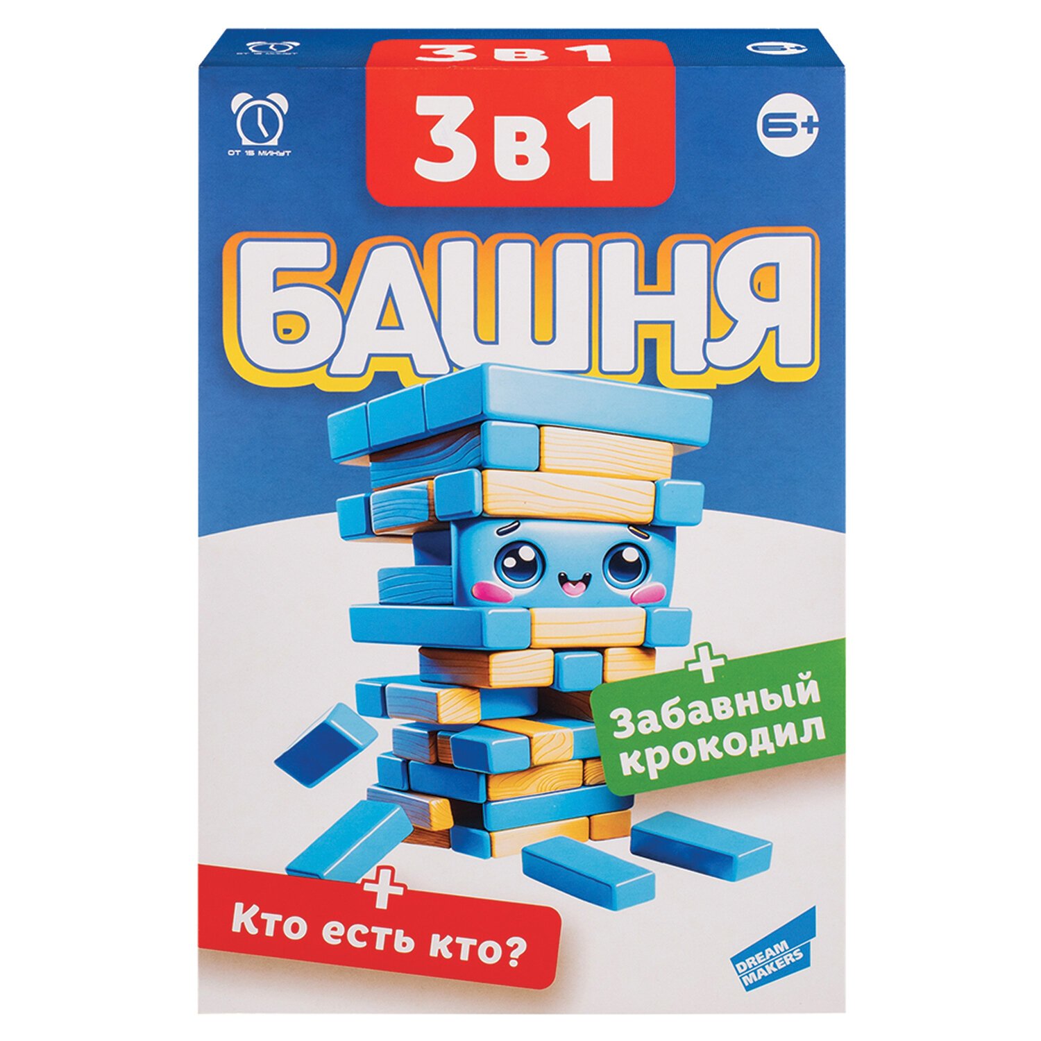 Игра детская настольная "3в1. Башня. Забавный крокодил. Кто есть кто?", DREAM MAKERS-