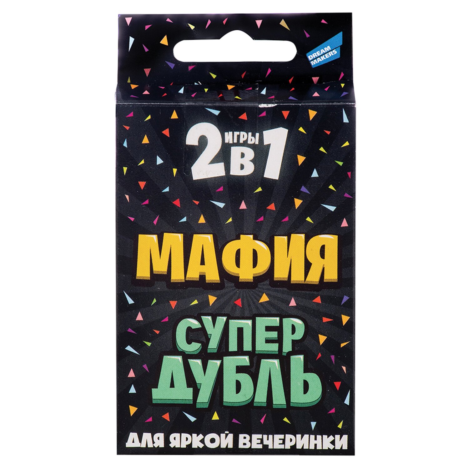 Настольная карточная игра, содержащая в себе две уникальные игры - "Мафия" и "Супердубль". Карточки двухсторонние, на одной стороне - "Мафия", на второй - "Супердубль".