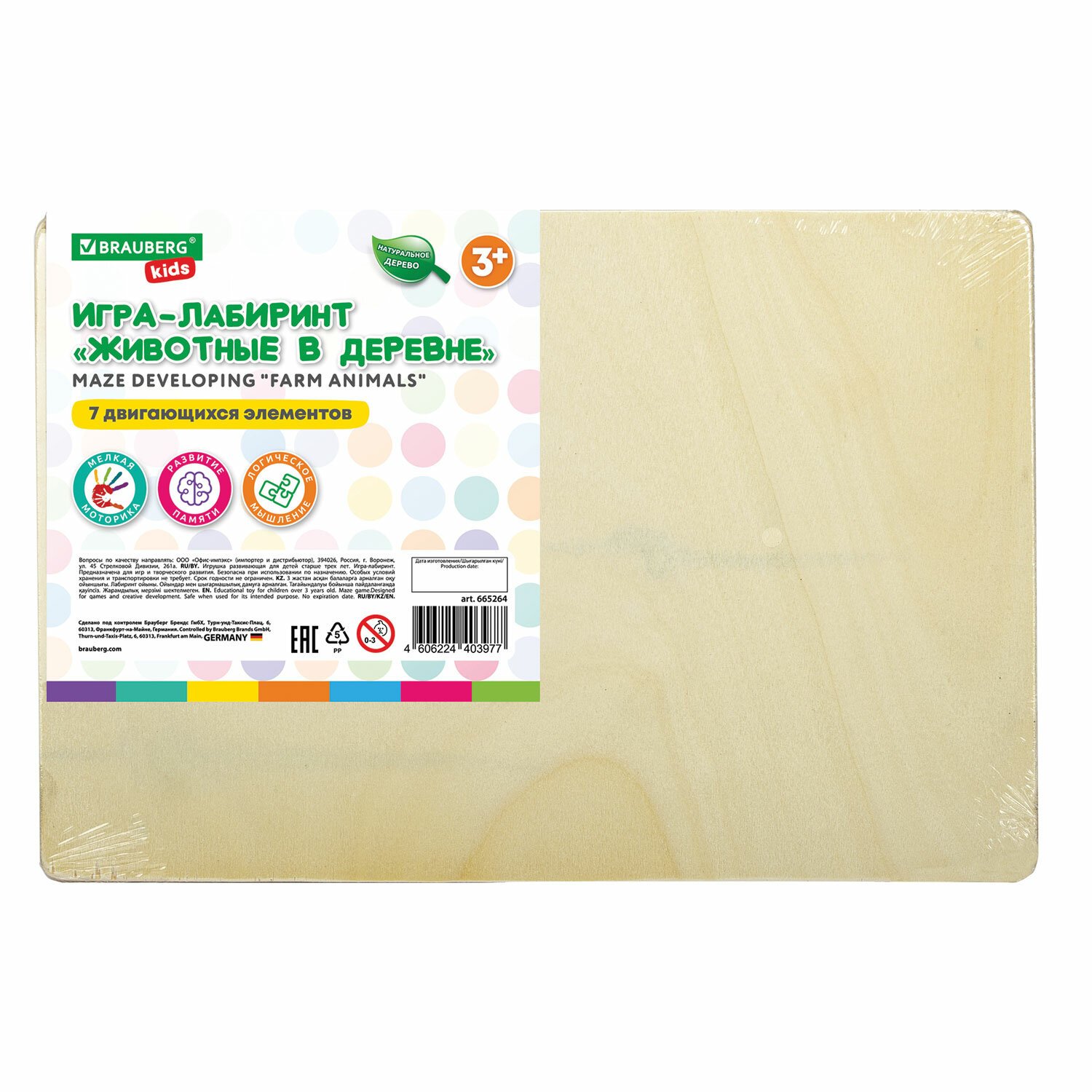 Игра-лабиринт деревянная развивающая "Животные в деревне", с бегунками, BRAUBERG KIDS, 665264