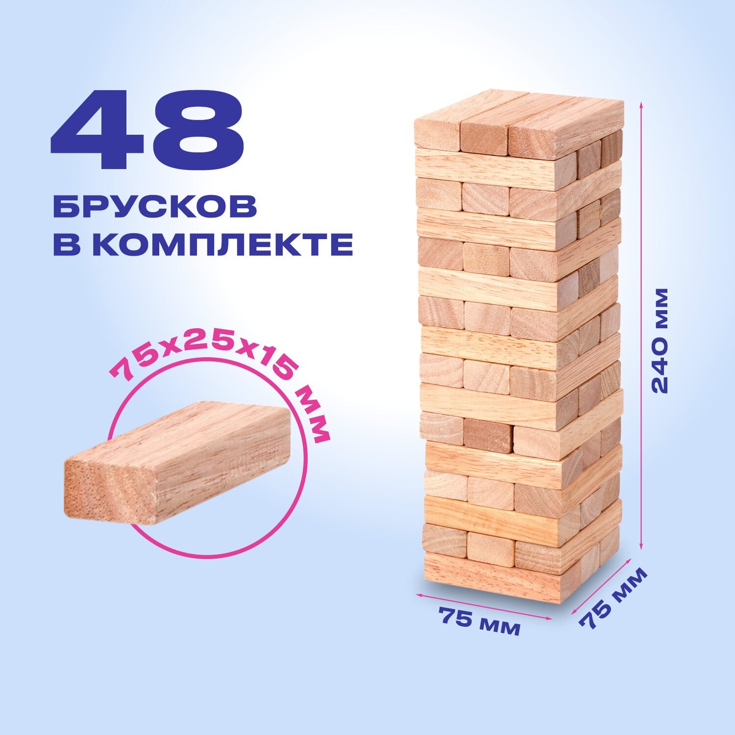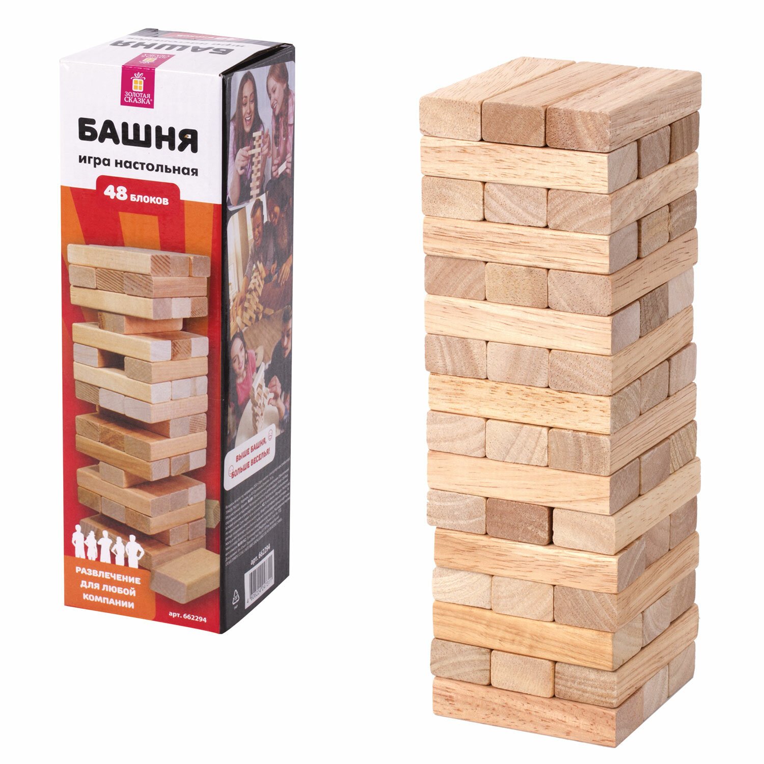 Игра настольная "БАШНЯ", 48 деревянных блоков, ЗОЛОТАЯ СКАЗКА, 662294