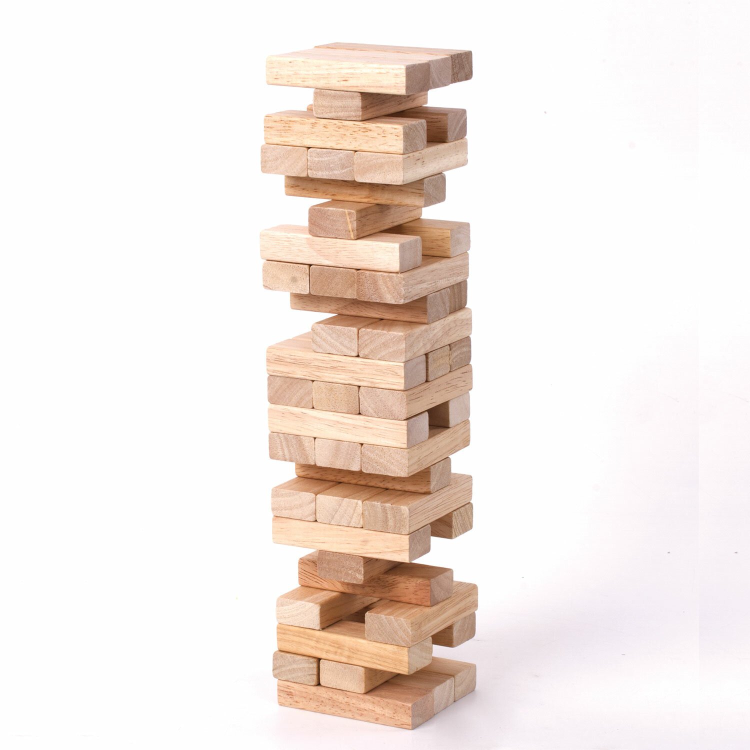 Суть игры проста: из одинаковых брусков необходимо построить башню, используя по 3 бруска в каждом ряду. Из основания башни игрокам предстоит по очереди вытаскивать по 1 бруску и перемещать их на верх башни так, чтобы она устояла. Игрок, в чей ход башня упадёт, проиграл. Выигрывает тот, кто последним поставил брусок, не обрушив башню.