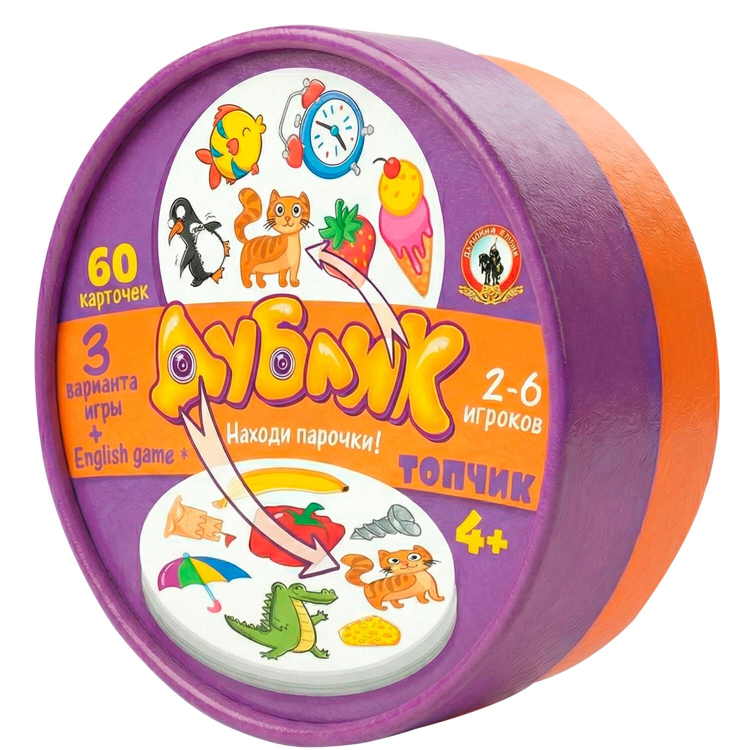 «Дублик» – это игра, которая сможет развеселить и увлечь каждого! В комплекте карточки с набором картинок на различные темы. Игрокам необходимо найти совпадающие изображения быстрее всех, кто больше всего наберет карточек – выигрывает. Память, скорость и внимание будут главными помощниками в этой игре. Набор карточек упакован в компактную коробку, ее удобно взять с собой в поездку. Игра подойдет для 2-4 игроков. Возраст 4+. В комплект игры входит 60 карточек и правила игры. Материал: бумага, картон.