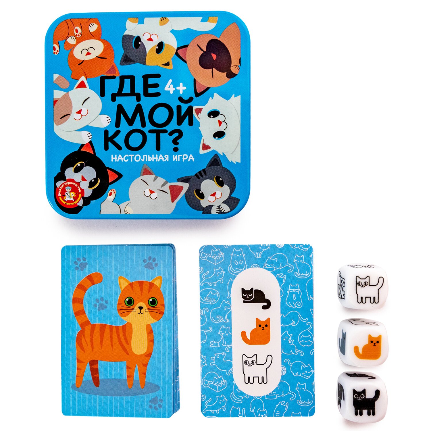 Игра настольная "Где мой кот?", жестяная коробочка, 10 КОР, 03569