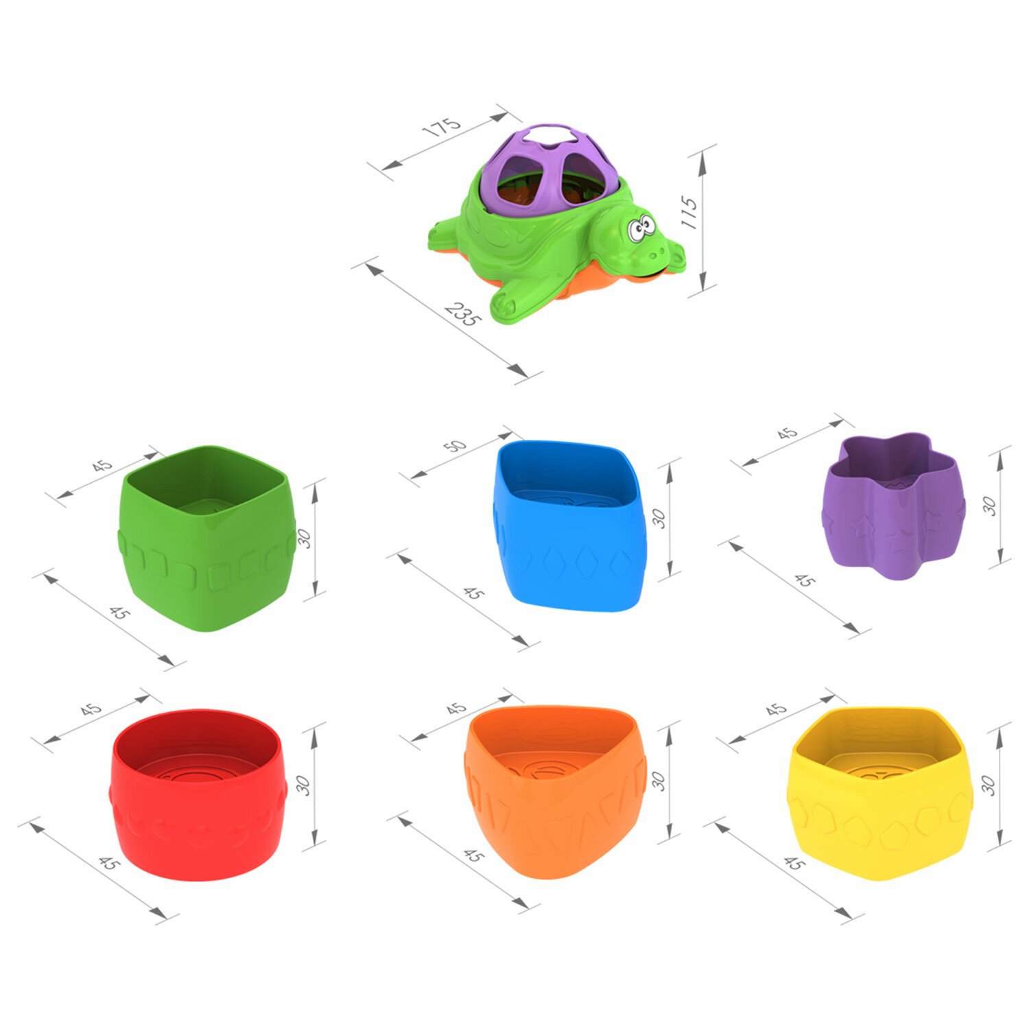 Безопасный прочный пластик, гладкие контуры, яркие цвета, которые не тускнеют со временем, оригинальный дизайн, упаковка– сетка.