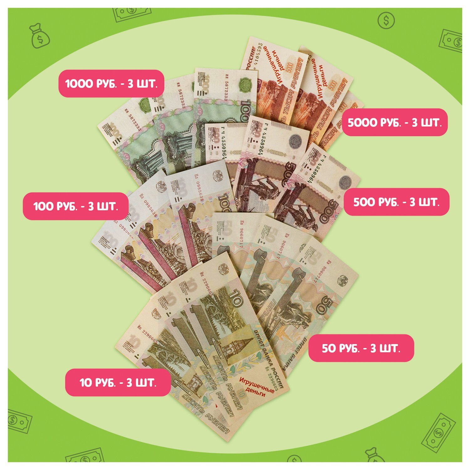 1. Банкноты номиналом 5 000, 1 000, 500, 100, 50, 10 рублей – по 3 шт. каждого вида.