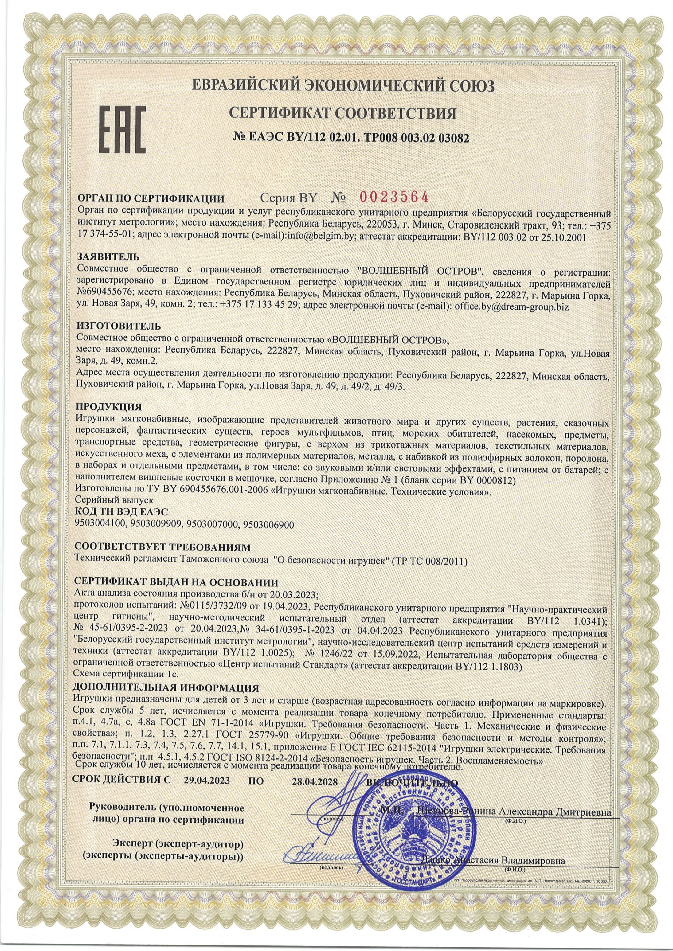 | Материал игрушки | Текстиль, полиэфирное волокно, пластик |