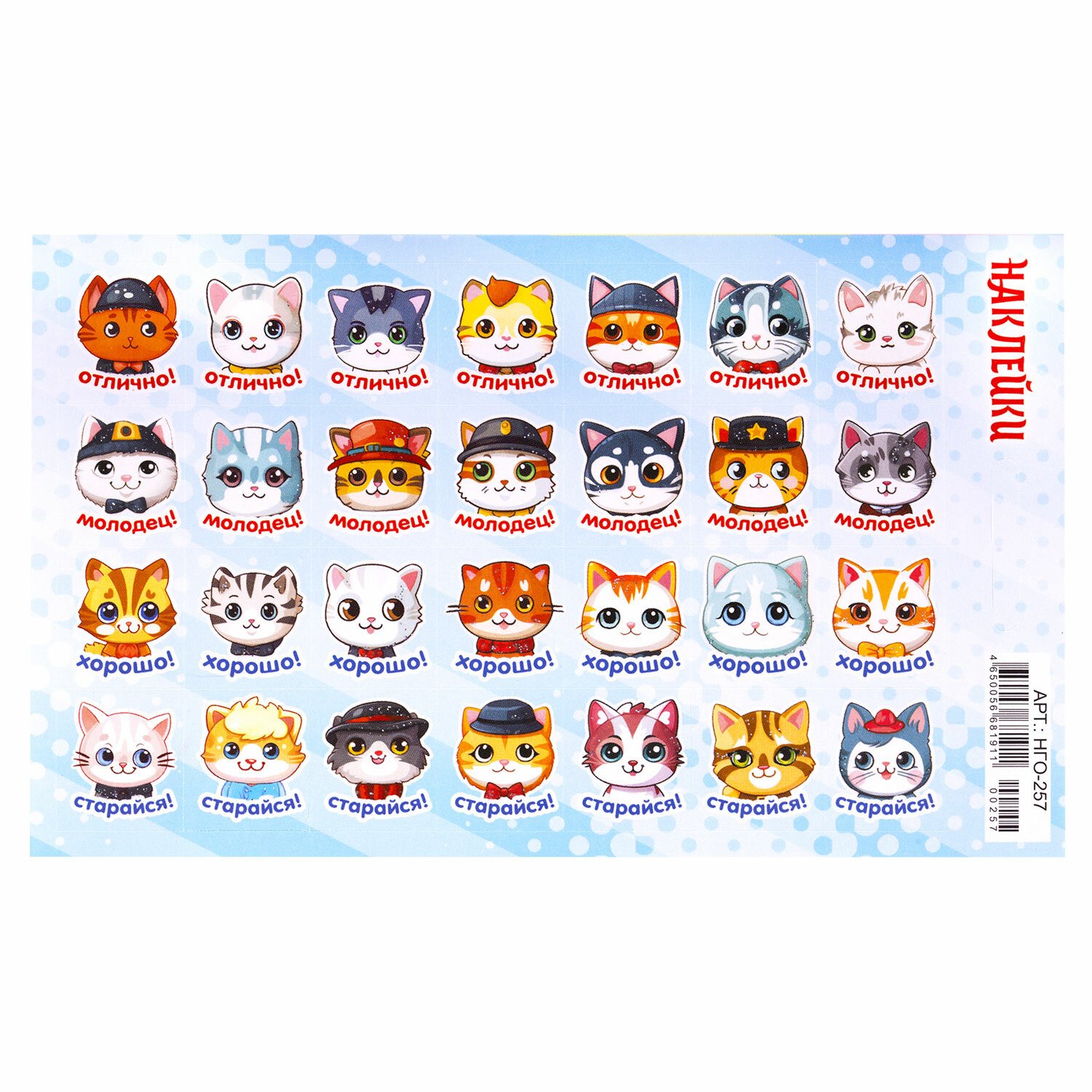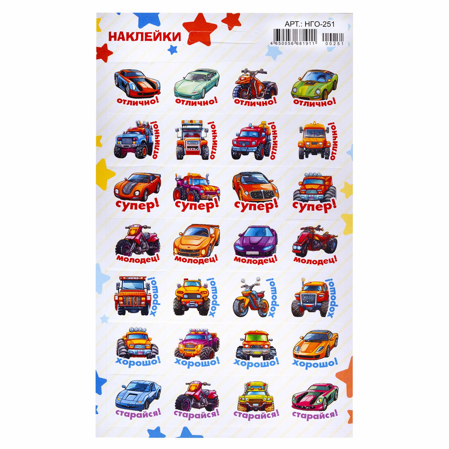 | Тип наклеек | поощрительные |
