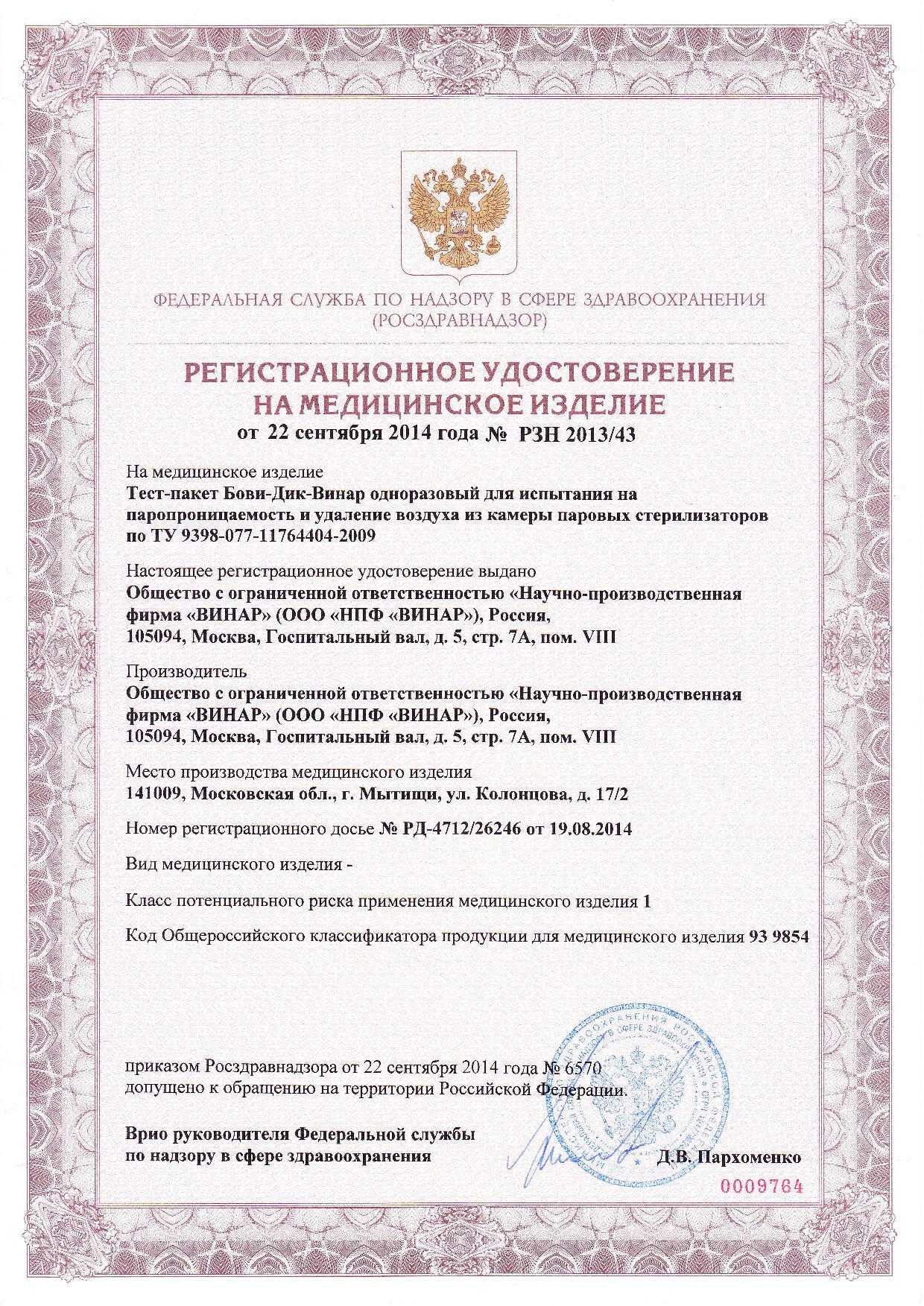 Регистрационное удостоверение № РЗН 2013/43 от 22.09.2014.