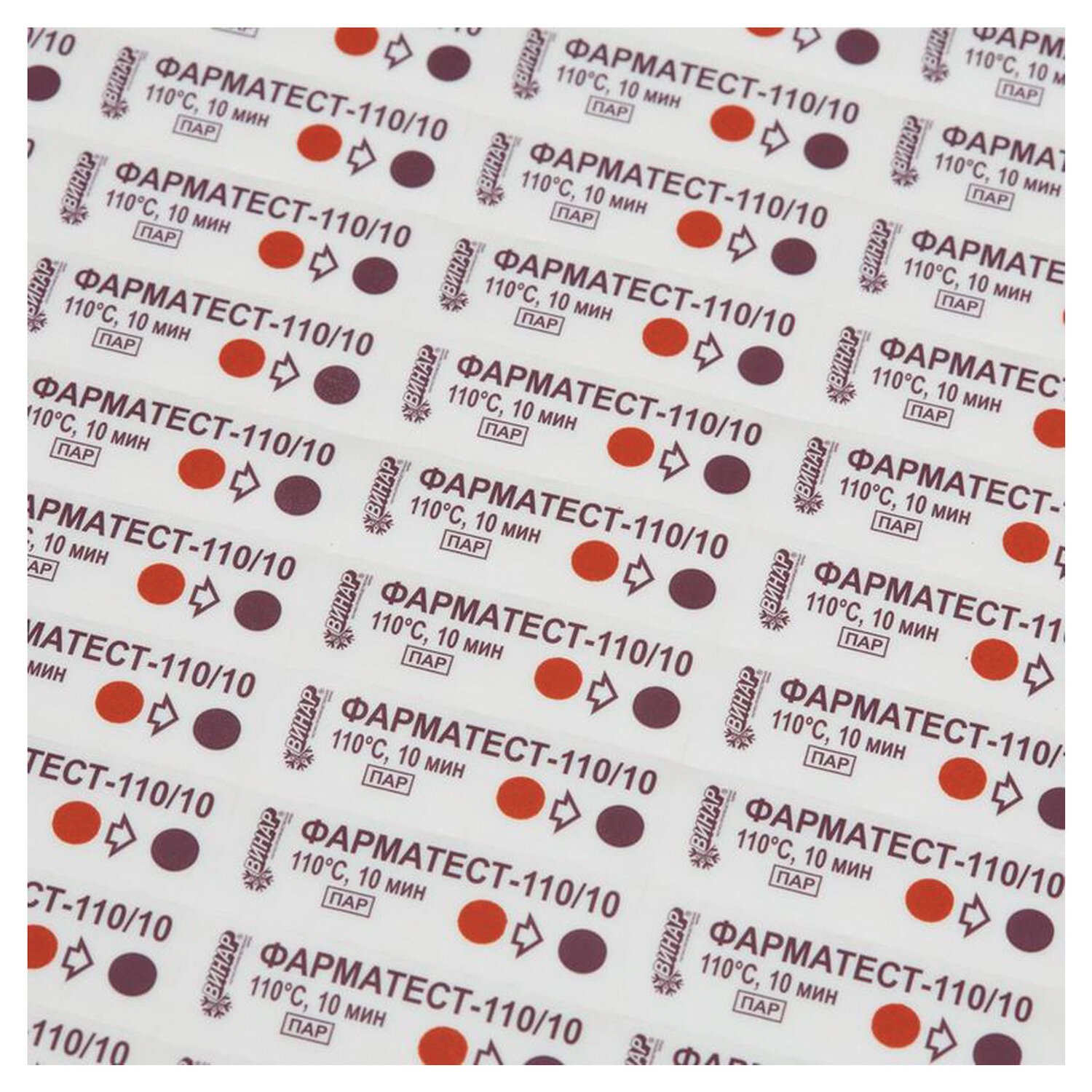 Индикатор стерилизации ВИНАР ФАРМАТЕСТ-110/10, комплект 500 шт., без журнала, 7