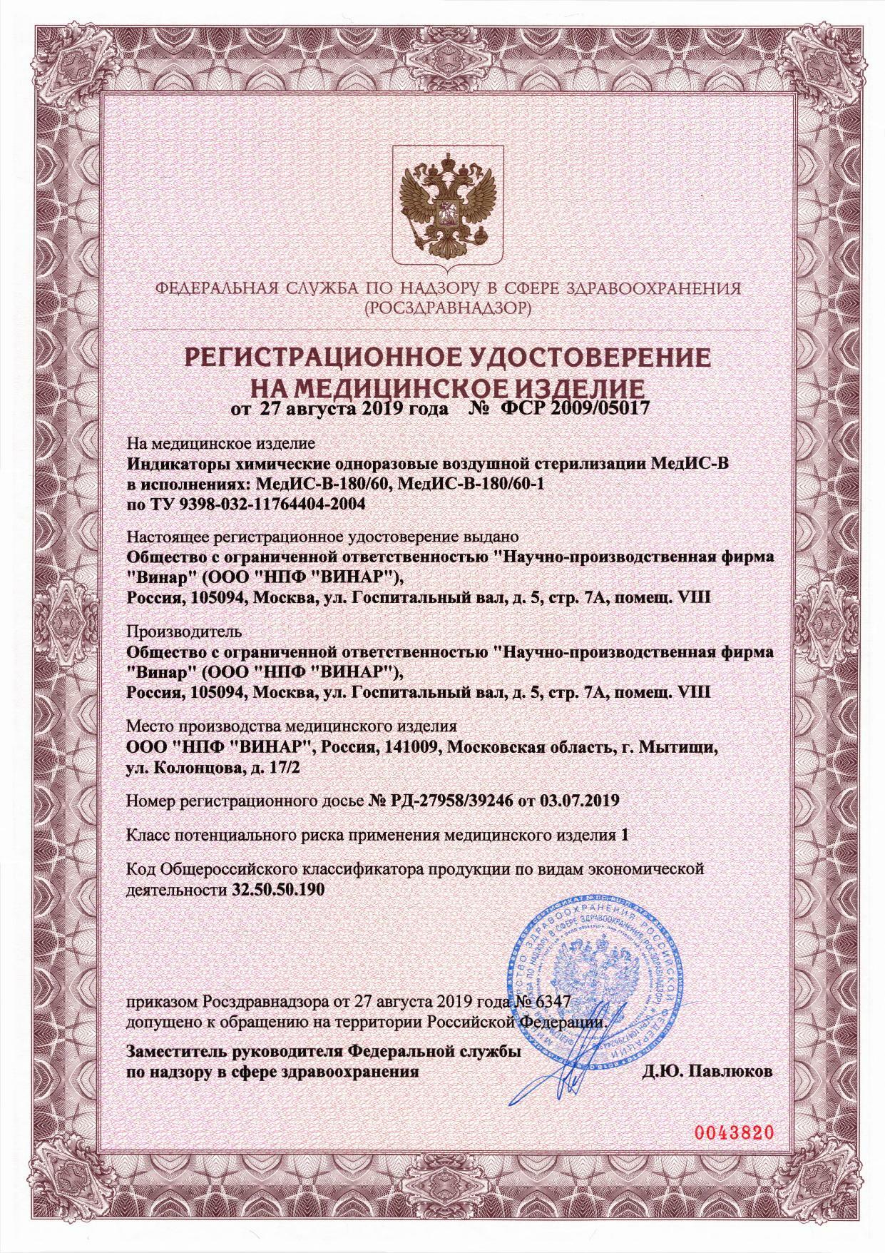 Регистрационные удостоверения № ФСР 2009/05017 от 27.08.2019.