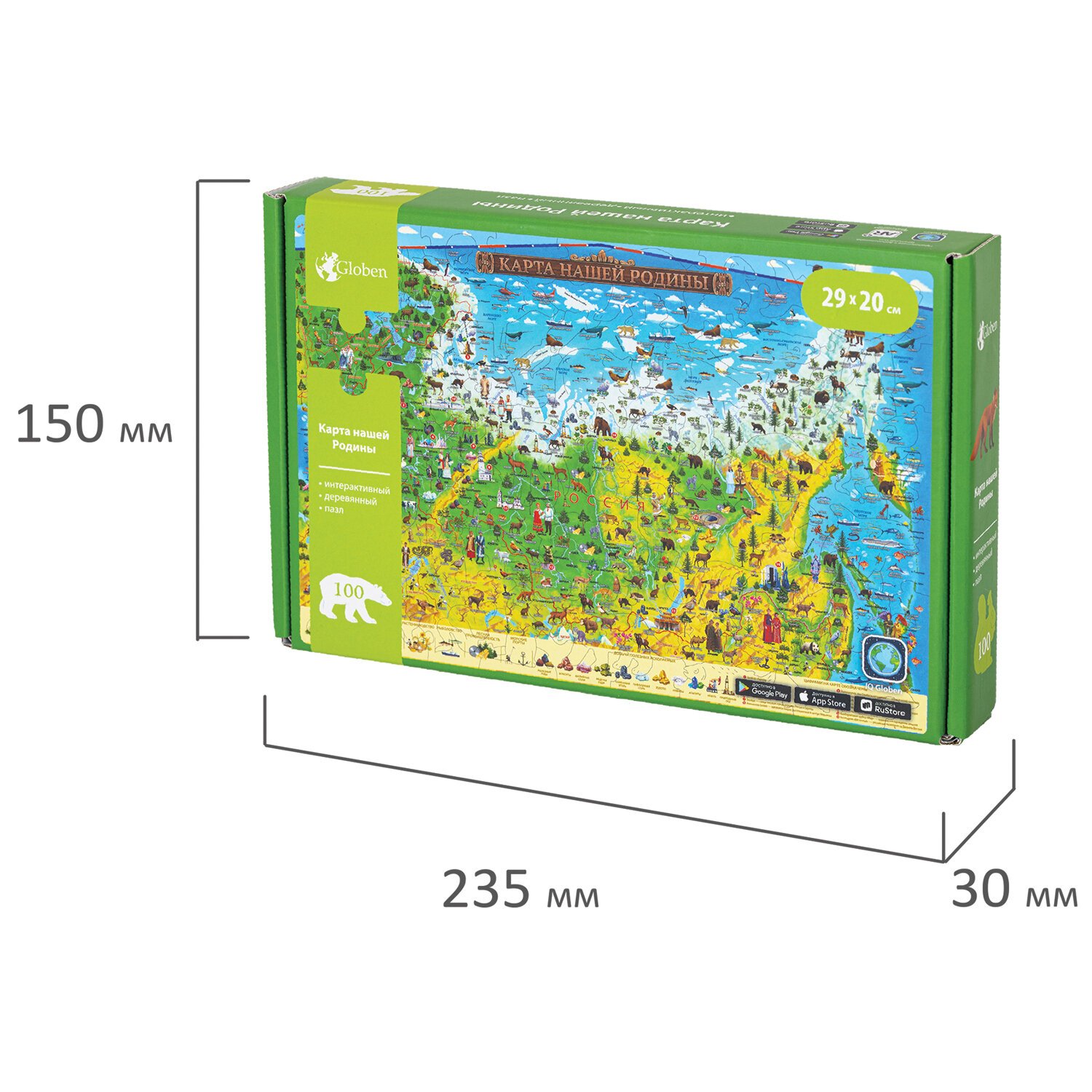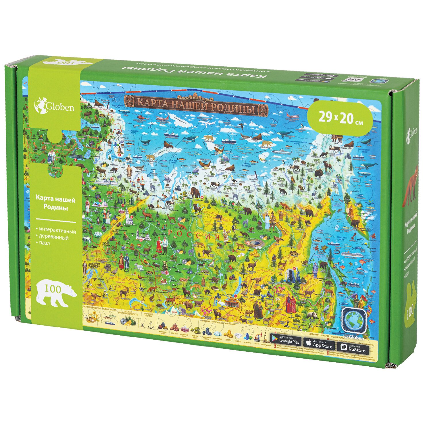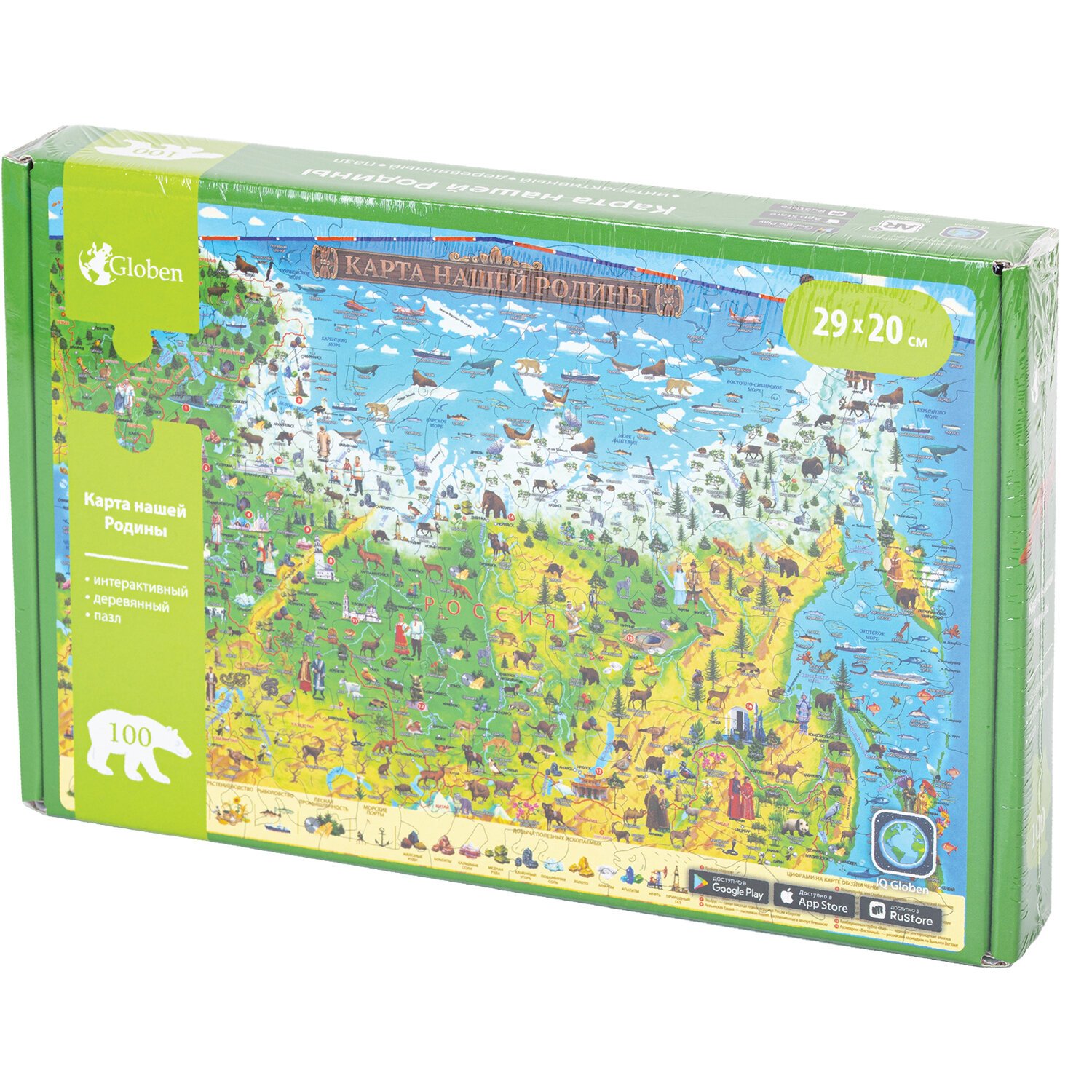 Интерактивная деревянная карта-пазл Globen "Карта Нашей Родины", 29х20см, 100 элементов, PAG5202