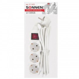 Удлинитель сетевой SONNEN U-155G, 5 розеток, c заземлением, 10 А, 5 м, белый, 511437