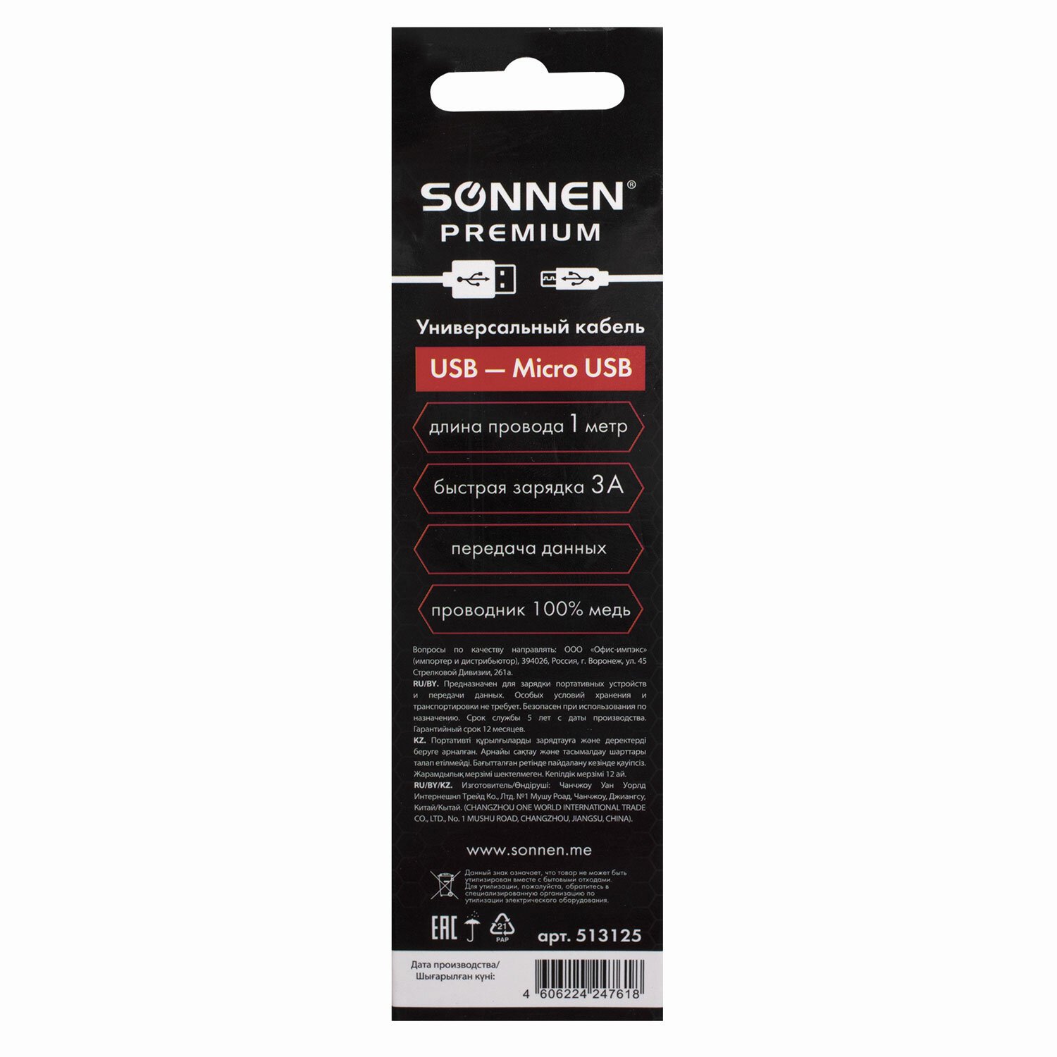 Высококачественный кабель-переходник USB 2.0-micro USB SONNEN Premium позволяет заряжать портативные устройства, используя функцию быстрой зарядки, а также синхронизировать их с ПК или ноутбуком.